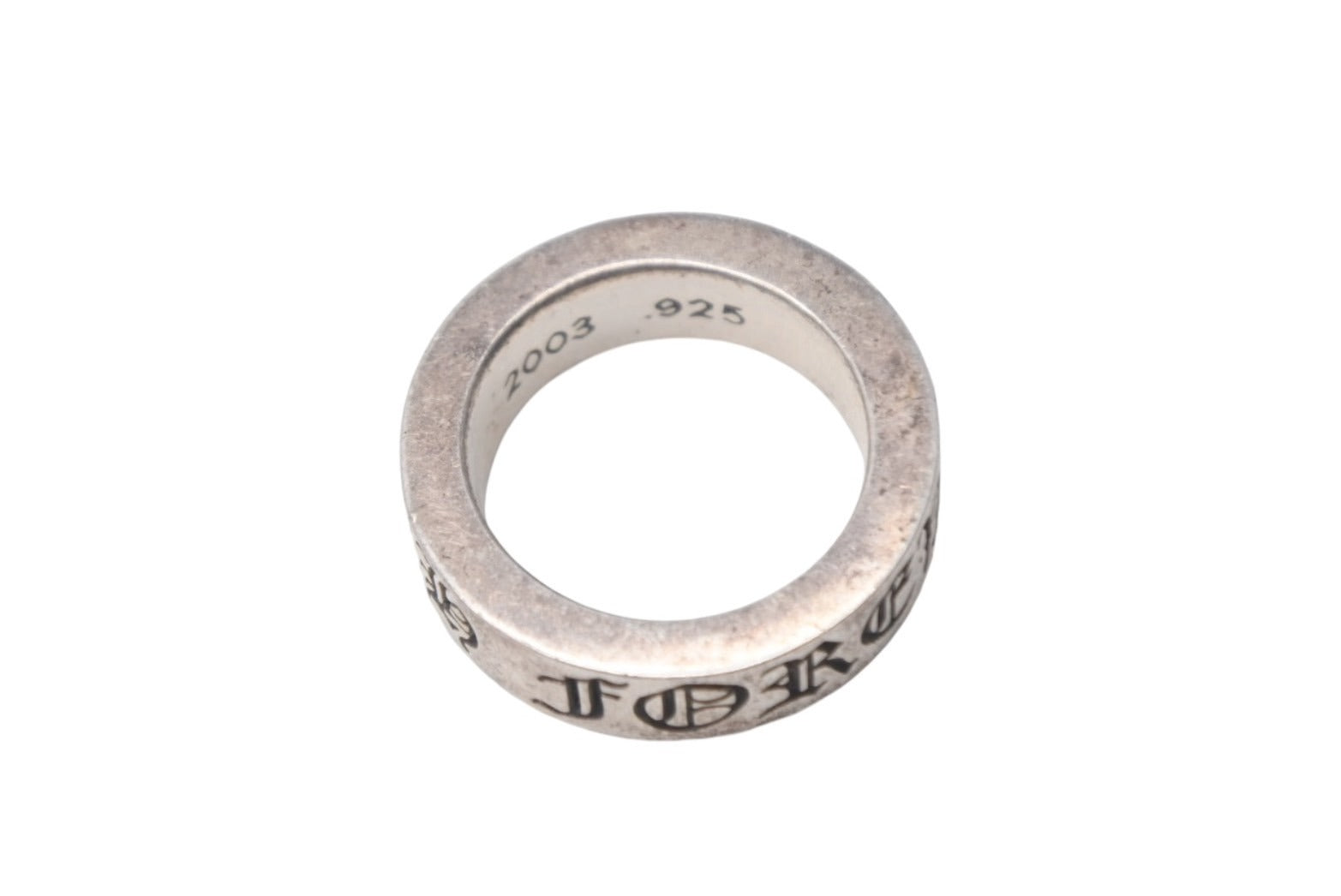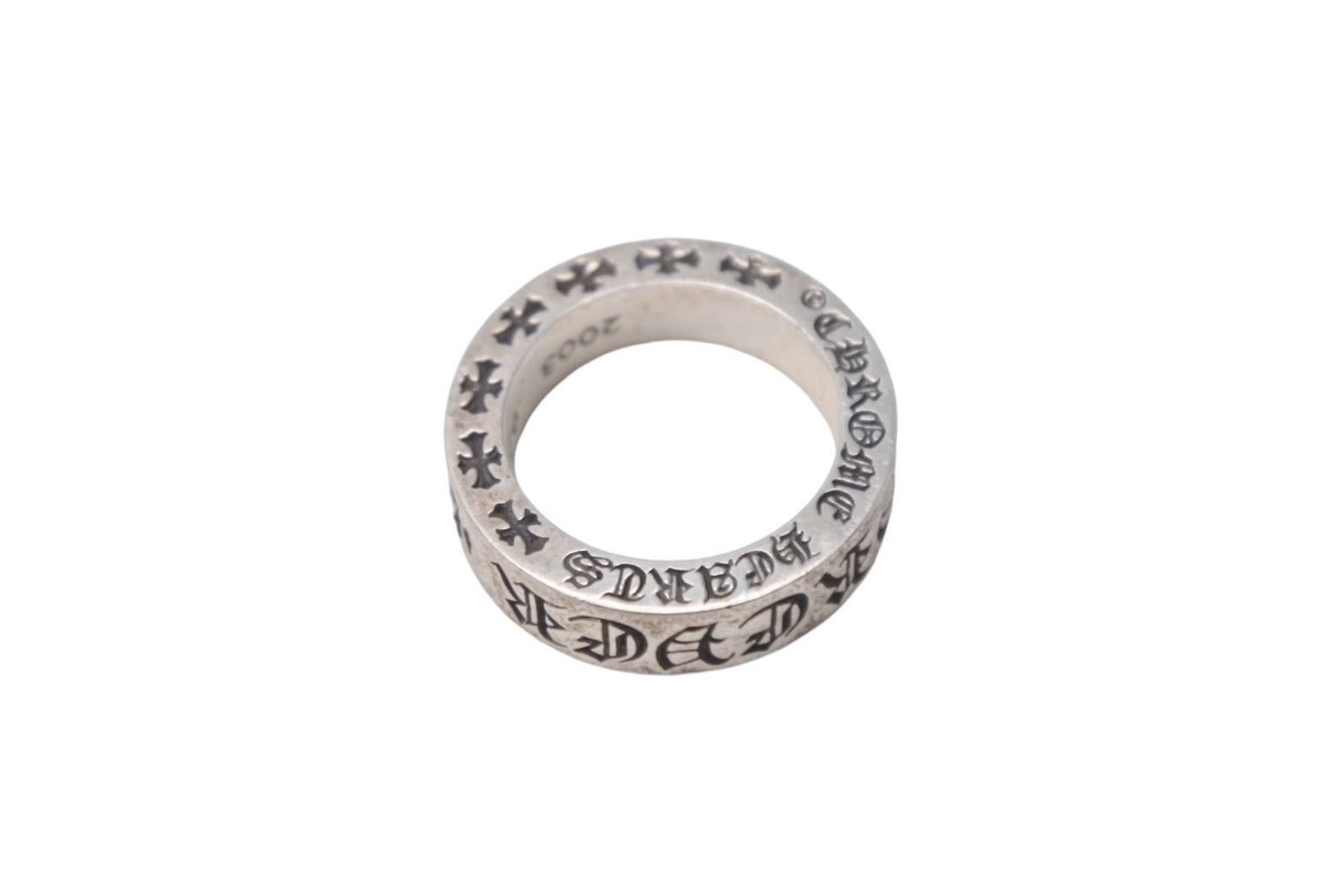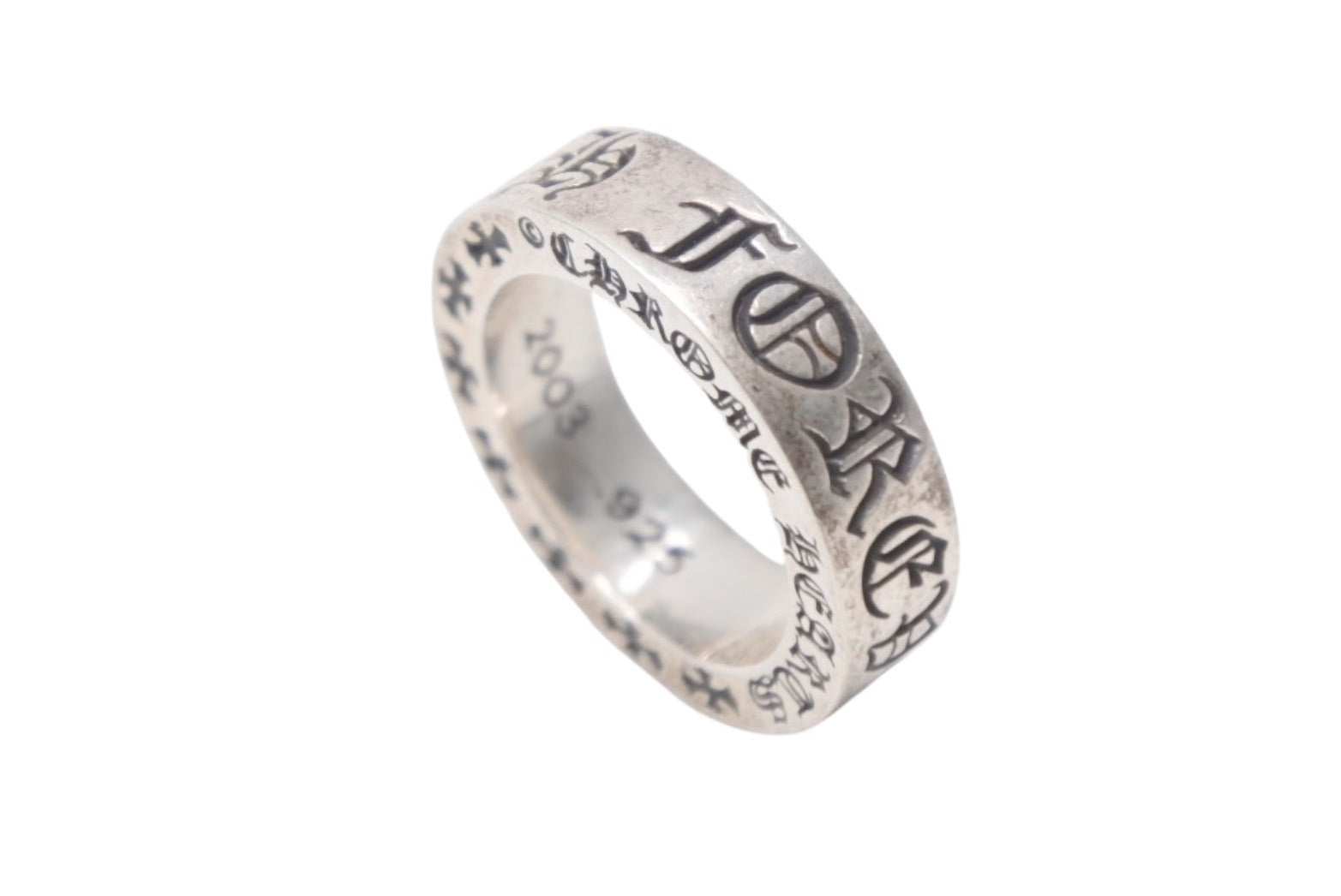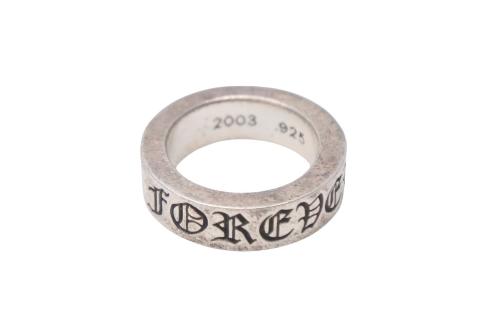 リングの表面には「FOREVER」の文字とクロスモチーフが描かれた美しいデザインと、側面には、「CHROME HEARTS」の文字とシンプルなクロスがしっかりと描かれています。