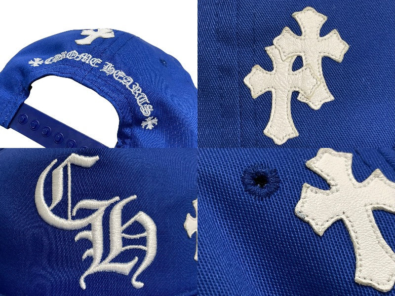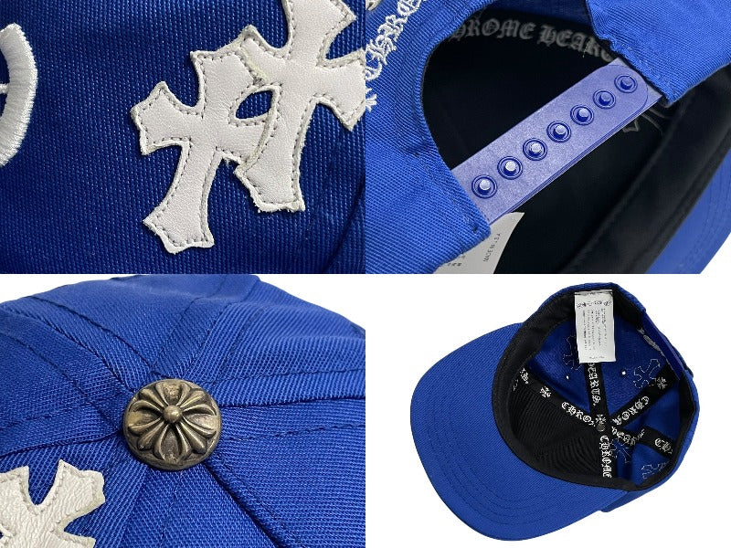 極美品 CHROME HEARTS クロムハーツ キャップ ベースボールキャップ クロスパッチ CHロゴ刺繍 クロスボール シルバー 925 ブルー 中古 4c071328