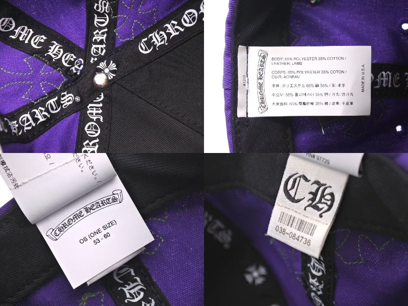 CHROME HEARTS クロムハーツ 5パネル クロスパッチ ベースボールキャップ パープル グリーン 刺繍 ONE SIZE 極美品 中古 4c072756