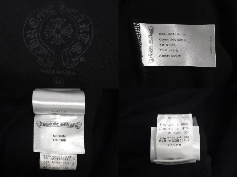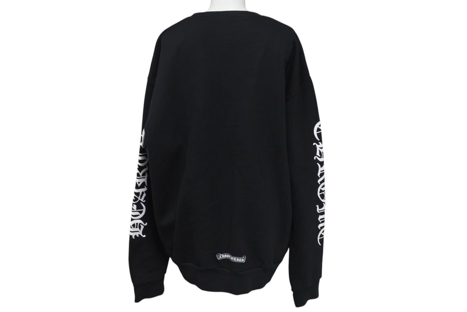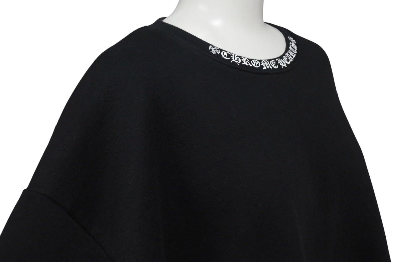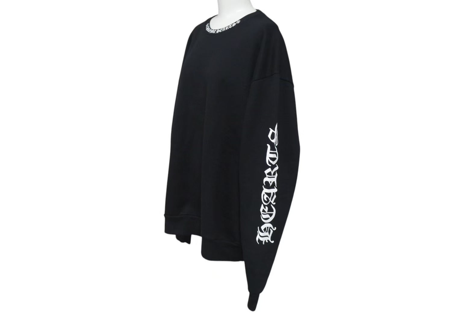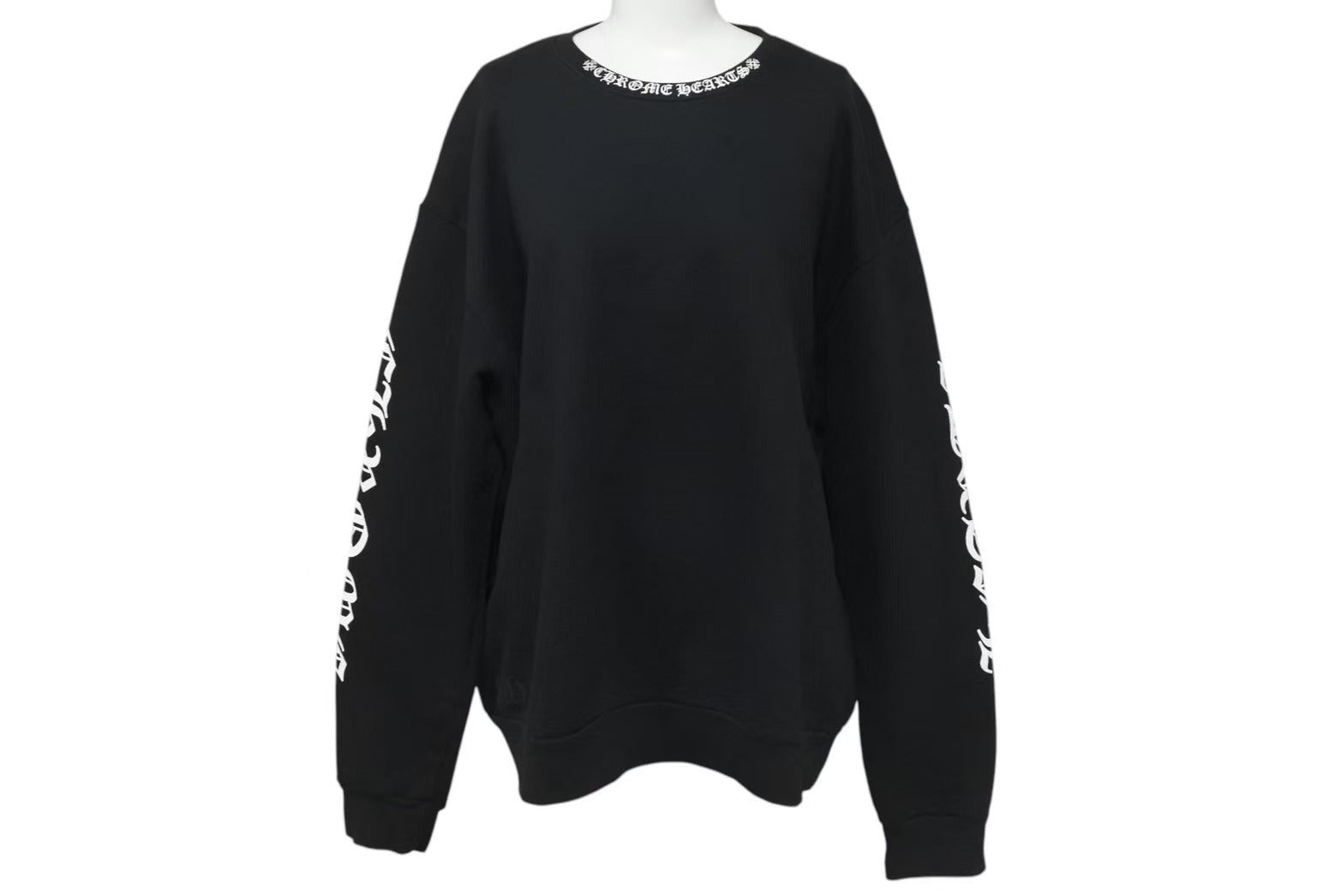 極美品 CHROME HEARTS クロムハーツ スウェット トレーナー サイズM 新型 ネックロゴ アームプリント ブラック コットン 中古 4c073779