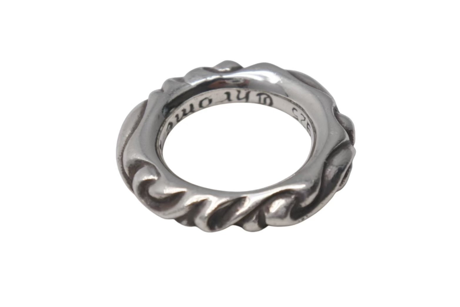 細身ながらも程良いボリュームに存在感のあるリングで、クロムハーツフリークなら1本は持っておきたい不動の人気を誇るリング。重ね付けにもぴったりなアイテムです。