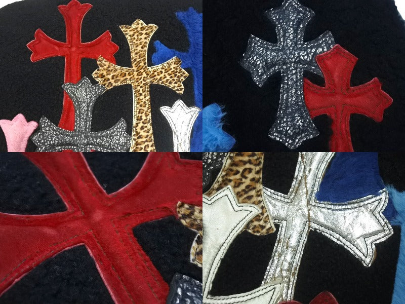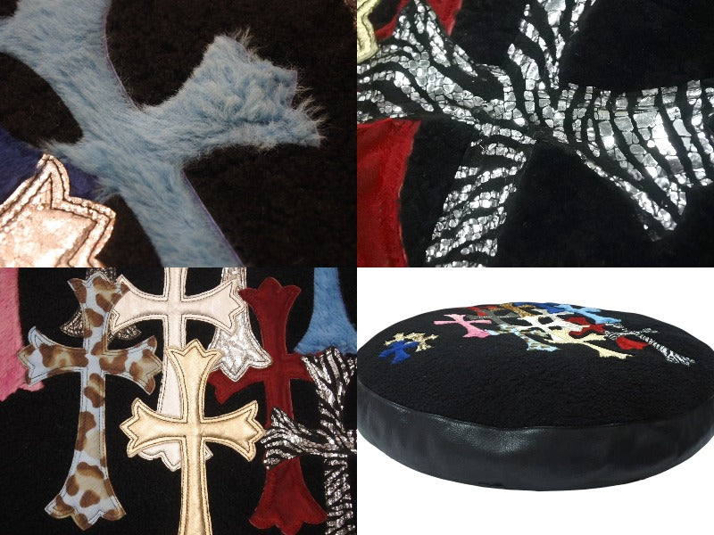 新品同様 CHROME HEARTS クロムハーツ マルチクロスパッチクッション インテリア リバーシブル レザー 牛革 中古 4c076093