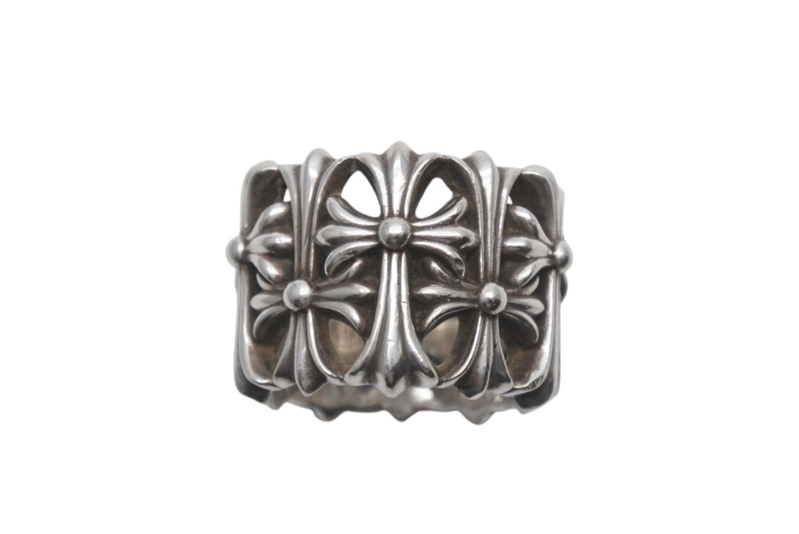 クロムハーツの中の大人気モチーフ、CHクロスのモチーフが上下交互に連なった贅沢かつ存在感の強いフォルムが印象的な、「セメタリーリング」です。