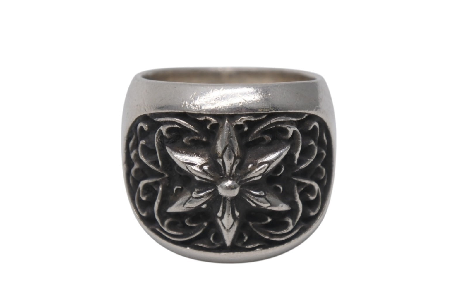 湾曲した、卵のようなという意味を持つ「オーバル」の名の通り、指に巻き付くかのように丸く象られてずっしりと重く、力強さを放つアイテムです。