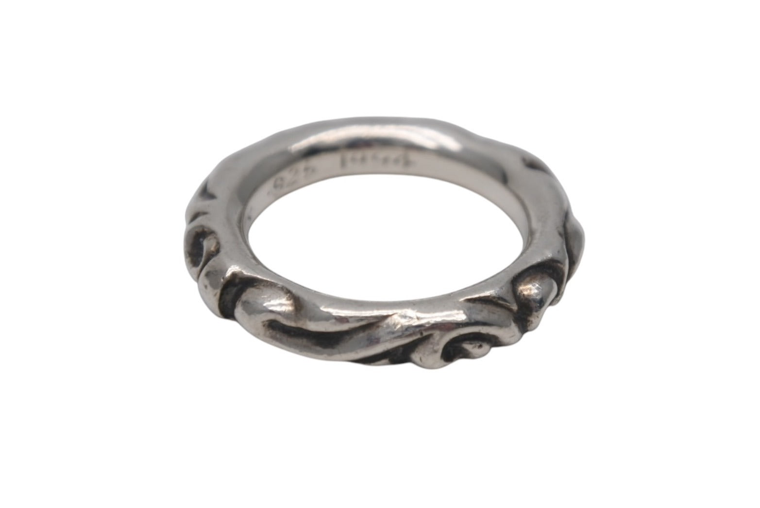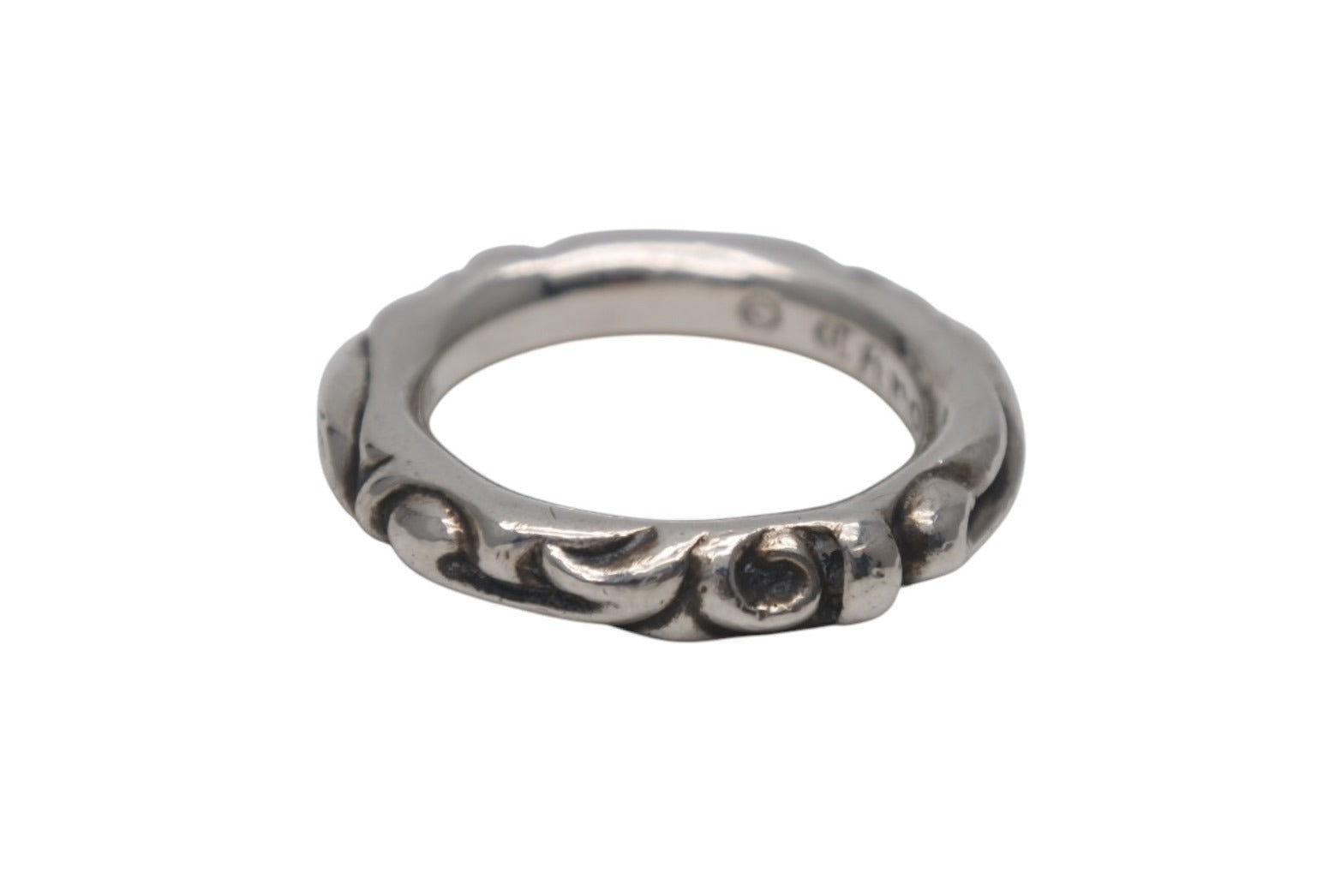 細身ながらも程良いボリュームに存在感のあるリングで、クロムハーツフリークなら1本は持っておきたい不動の人気を誇るリング。重ね付けにもぴったりなアイテムです。