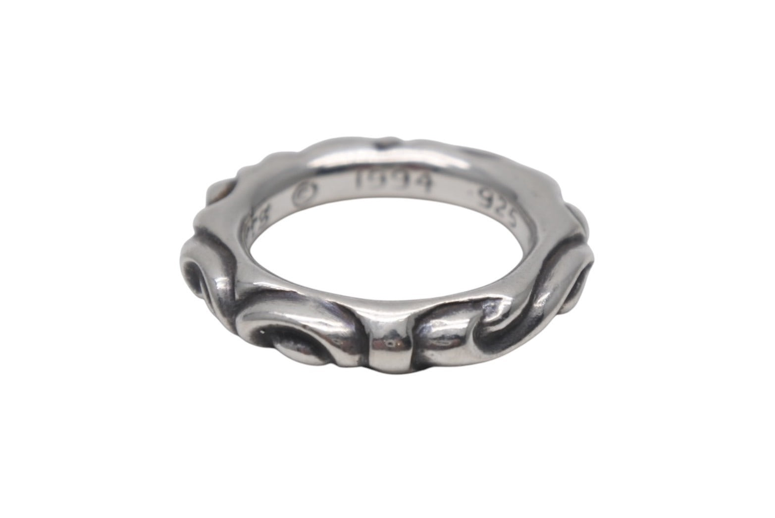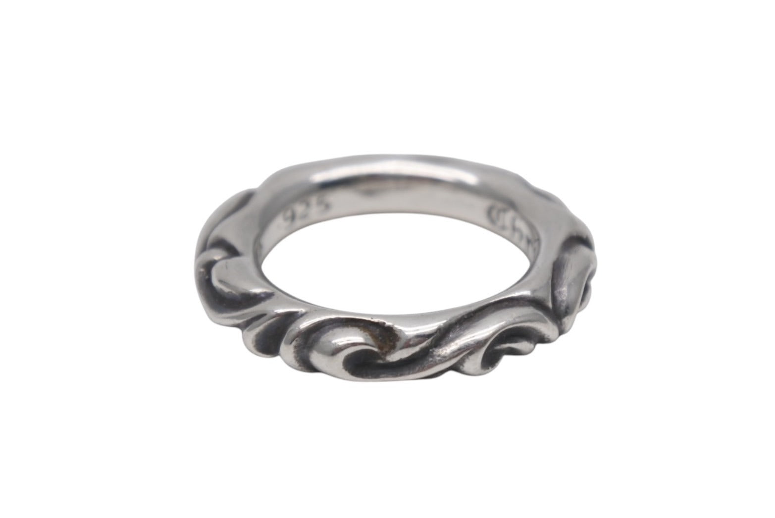 細身ながらも程良いボリュームに存在感のあるリングで、クロムハーツフリークなら1本は持っておきたい不動の人気を誇るリング。重ね付けにもぴったりなアイテムです。