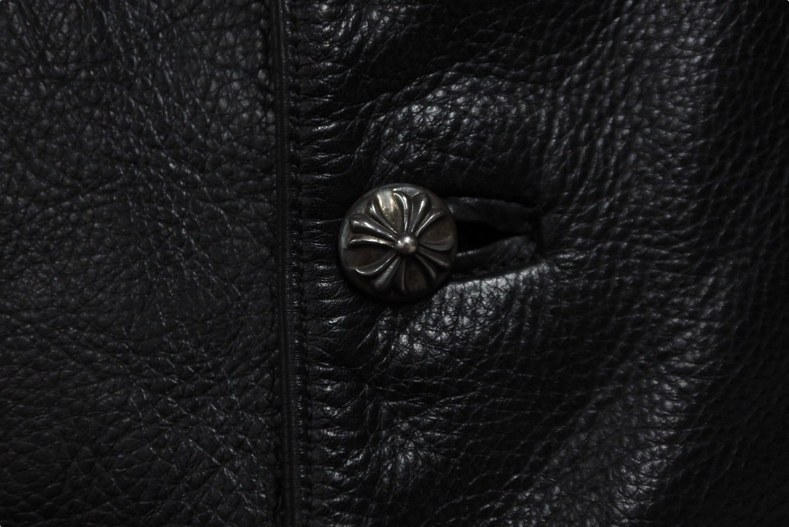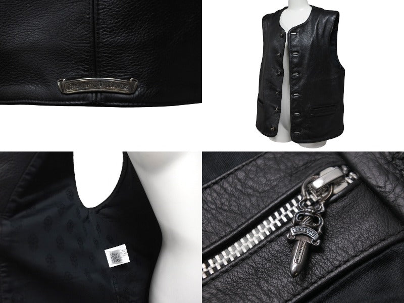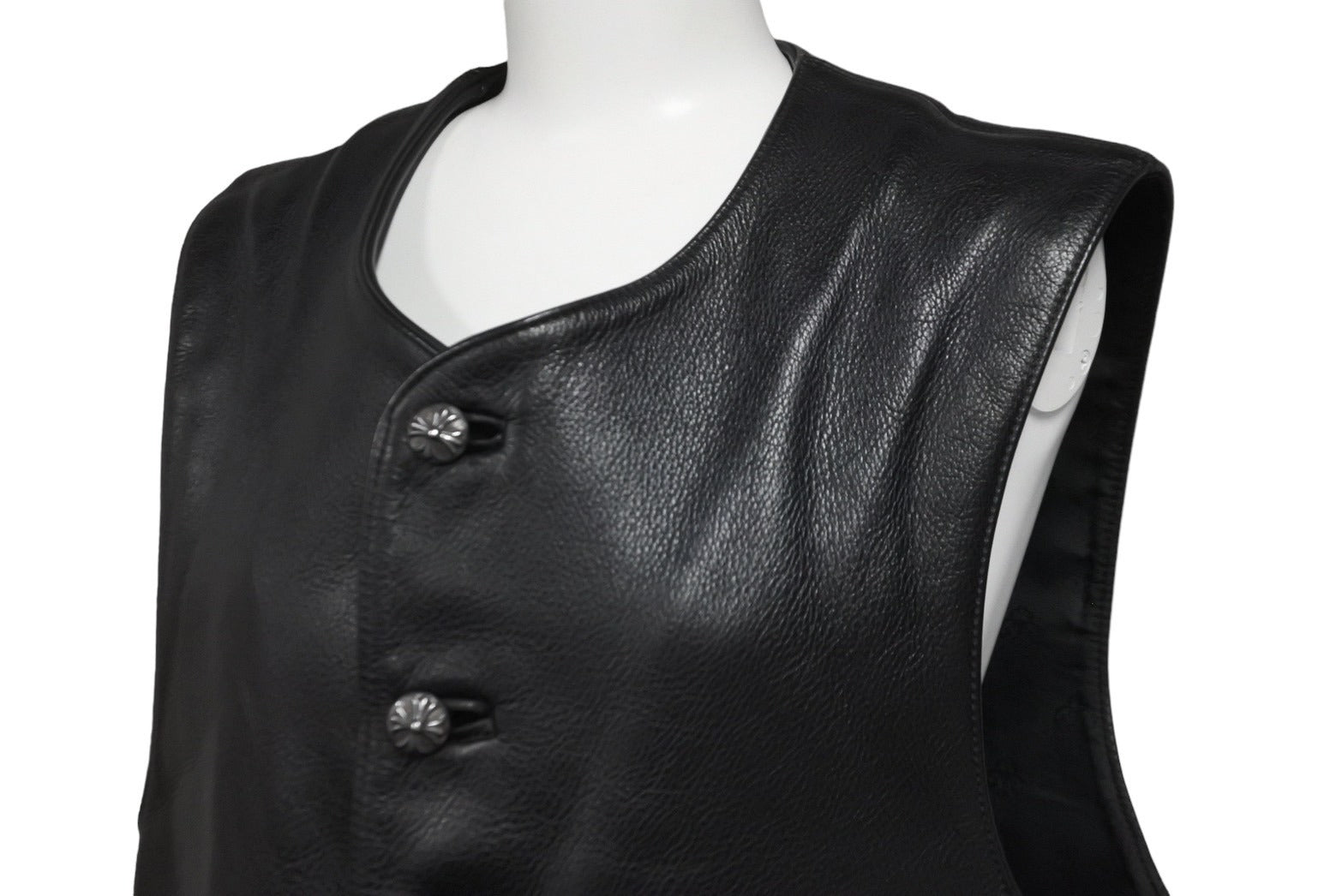 極美品 CHROME HEARTS クロムハーツ ベスト CHクロスボタン ブラック 牛革 シルバー925 サイズS 中古 56994