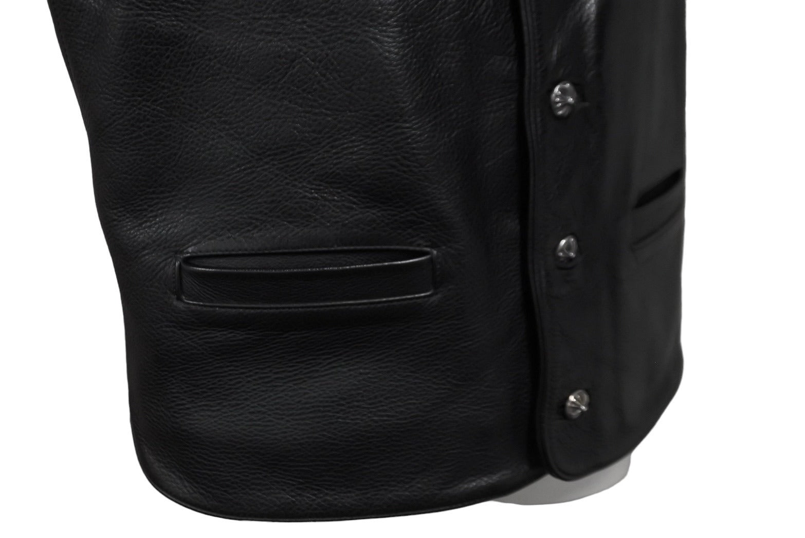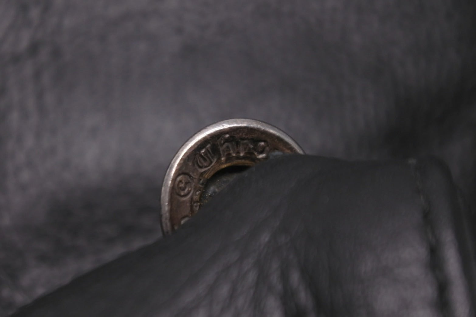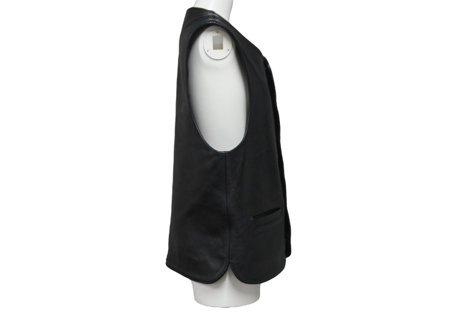 極美品 CHROME HEARTS クロムハーツ ベスト CHクロスボタン ブラック 牛革 シルバー925 サイズS 中古 56994