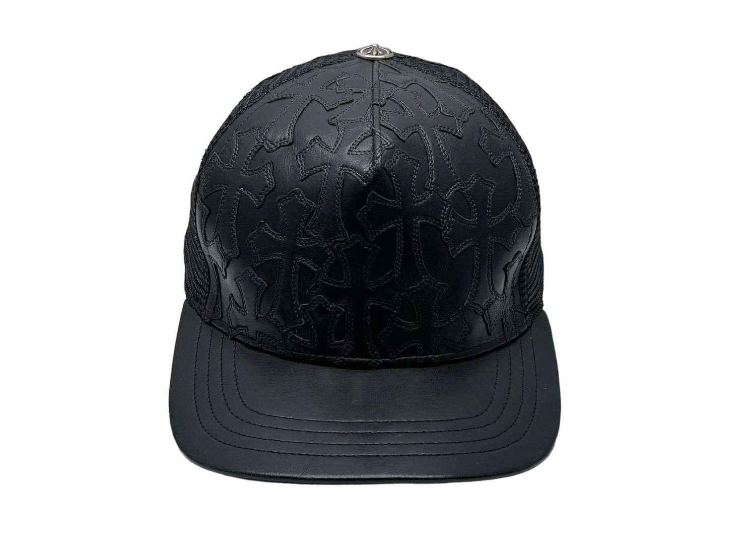 CHROME HEARTS クロムハーツ セメタリークロス パッチ レザー トラッカー キャップメッシュ キャップ ブラック 美品 中古 60189