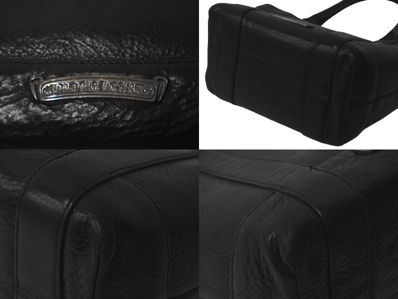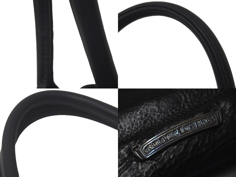 CHROME HEARTS クロムハーツ ミニ レザー トートバッグ ブラック シルバー925 ユニセックス 美品 中古 61489