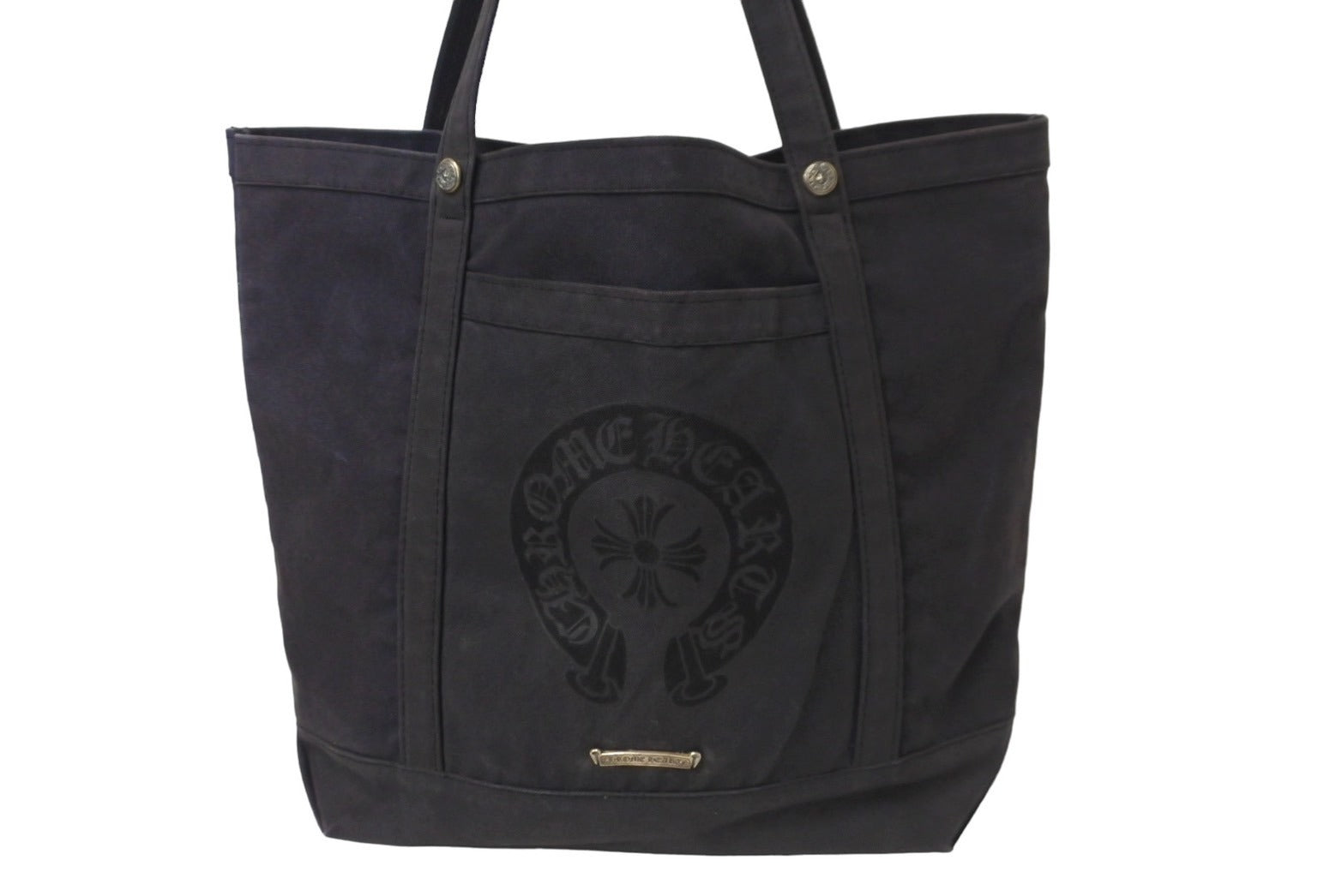 CHROME HEARTS クロムハーツ CHプラス トートバッグ ハンドバッグ コットン ブラック シルバー925 シルバー 金具 良品 中古 62331