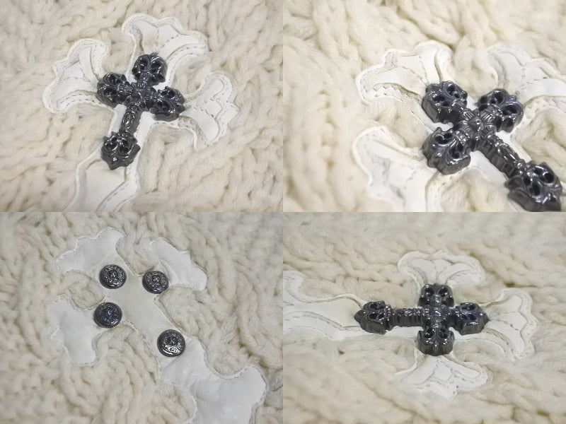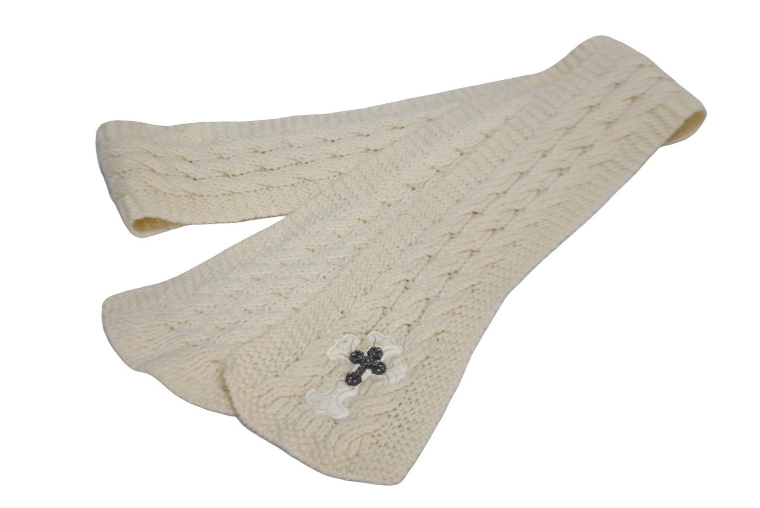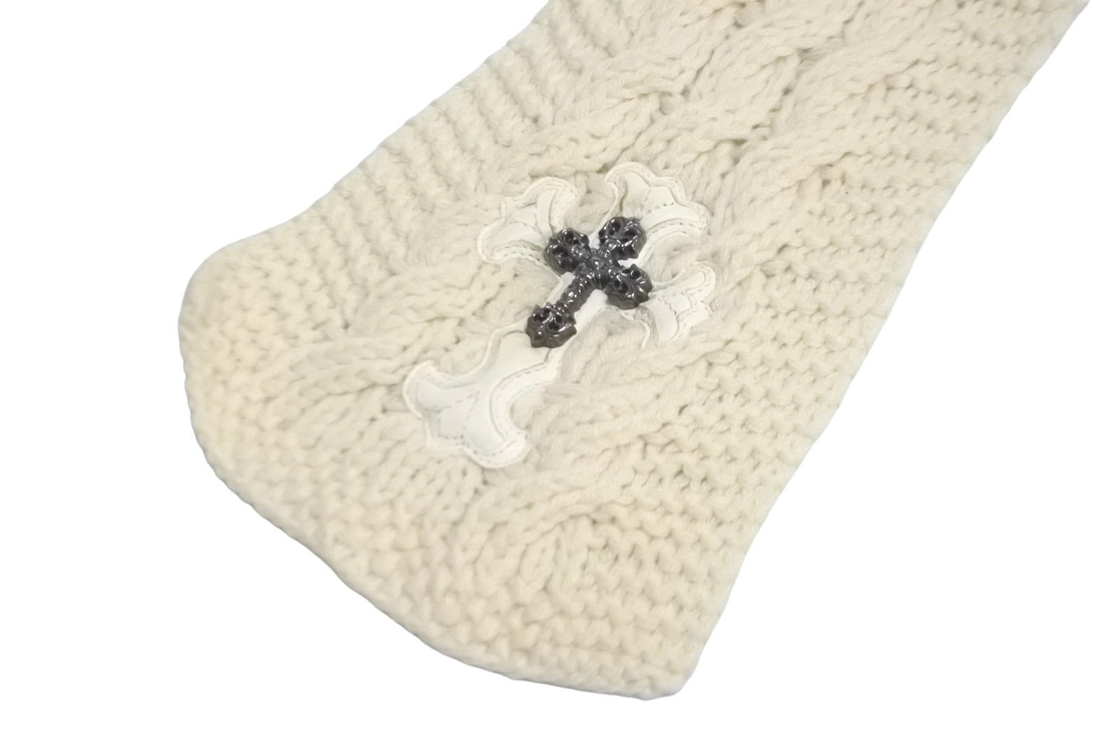 CHROME HEARTS クロムハーツ ネックウォーマー マフラー フィリグリークロス クロスパッチケーブルニット ホワイト 美品 中古 63197