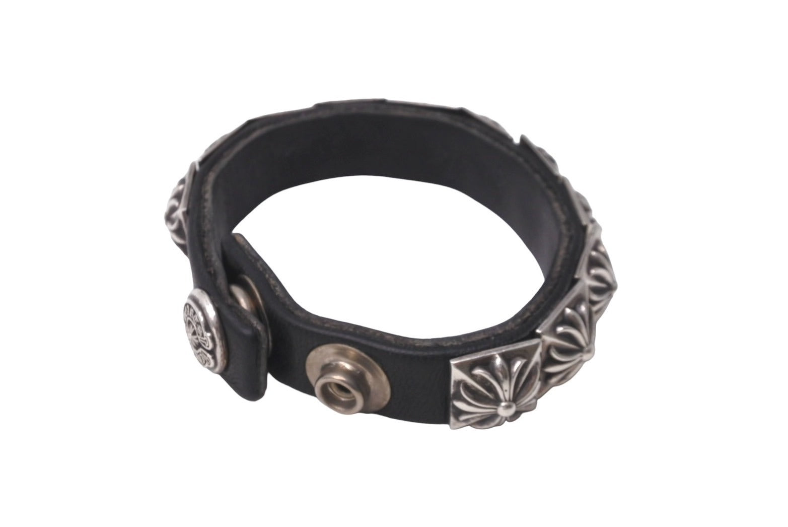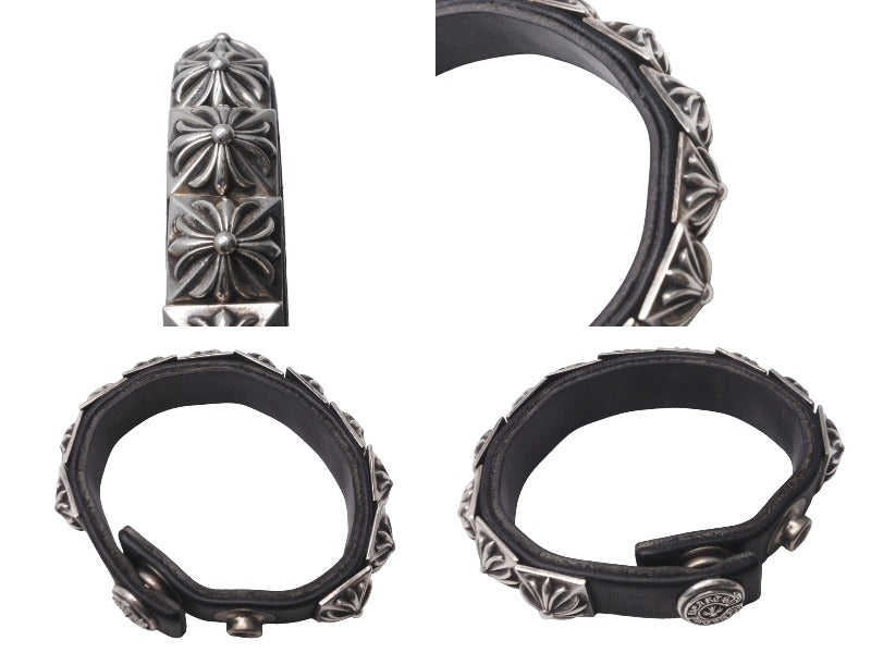 CHROME HEARTS クロムハーツ ブレスレット ZERO STDS SNGL ROW ブラック シルバー アクセサリー レザー 美品 中古 63599