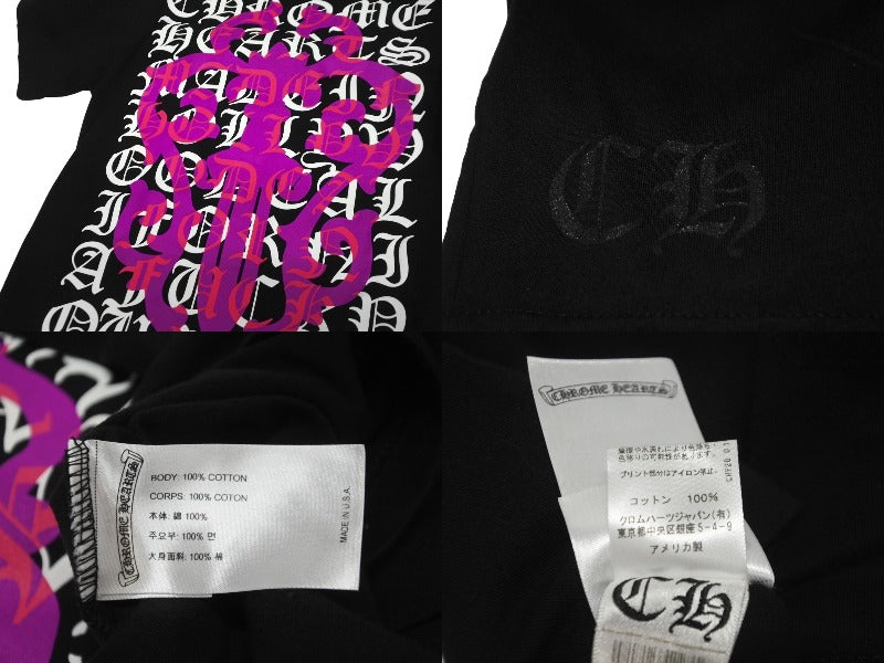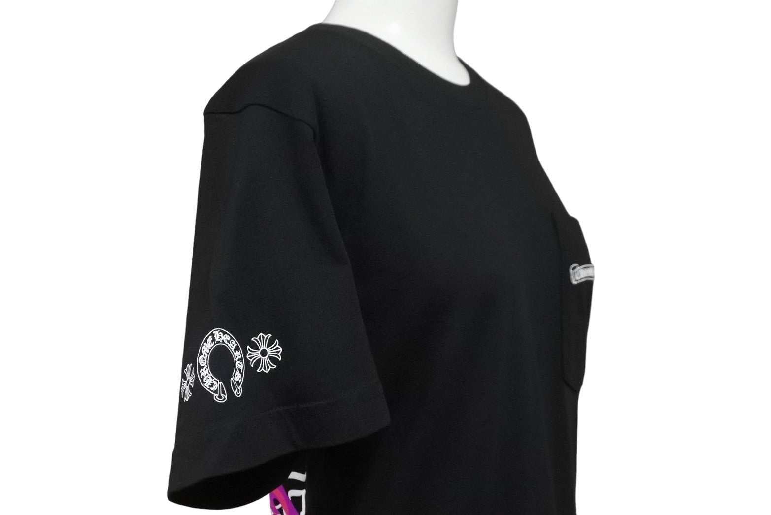極美品 CHROME HEARTS クロムハーツ バックタガー ポケット 半袖 Tシャツ S ブラック ホワイト パープル 中古 64606