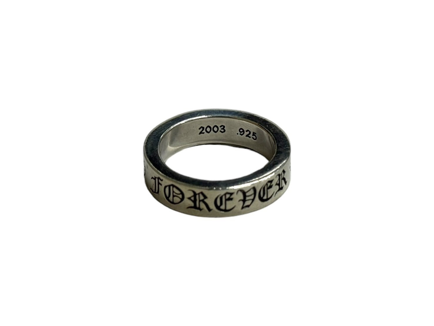 リングの表面には「FOREVER」の文字とクロスモチーフが描かれた美しいデザインと、側面には、「CHROME HEARTS」の文字とシンプルなクロスがしっかりと描かれています。