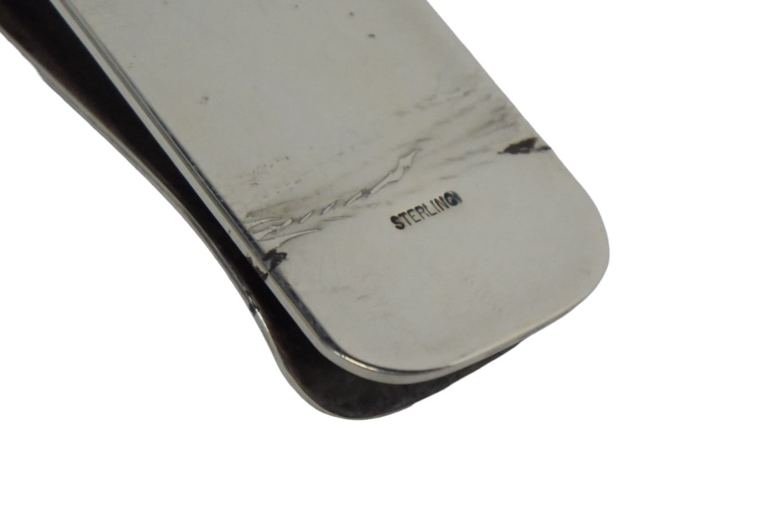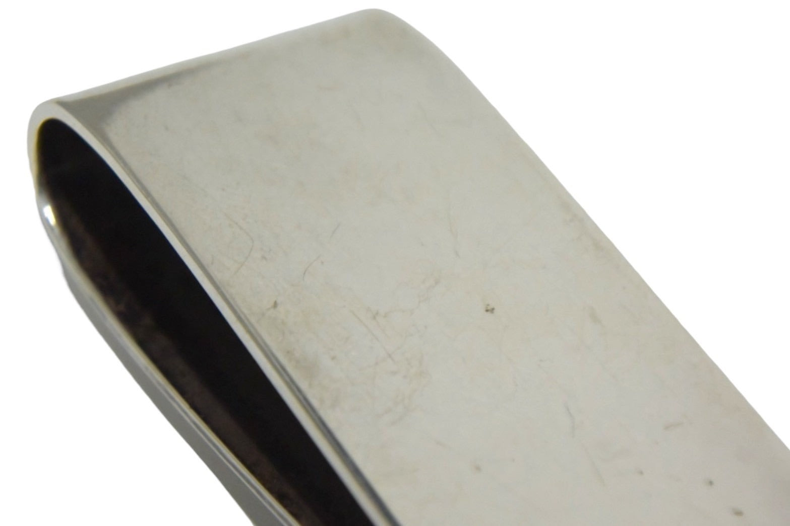 シルバーマネークリップのフロントにはフローラルクロスのデザインが施されております。