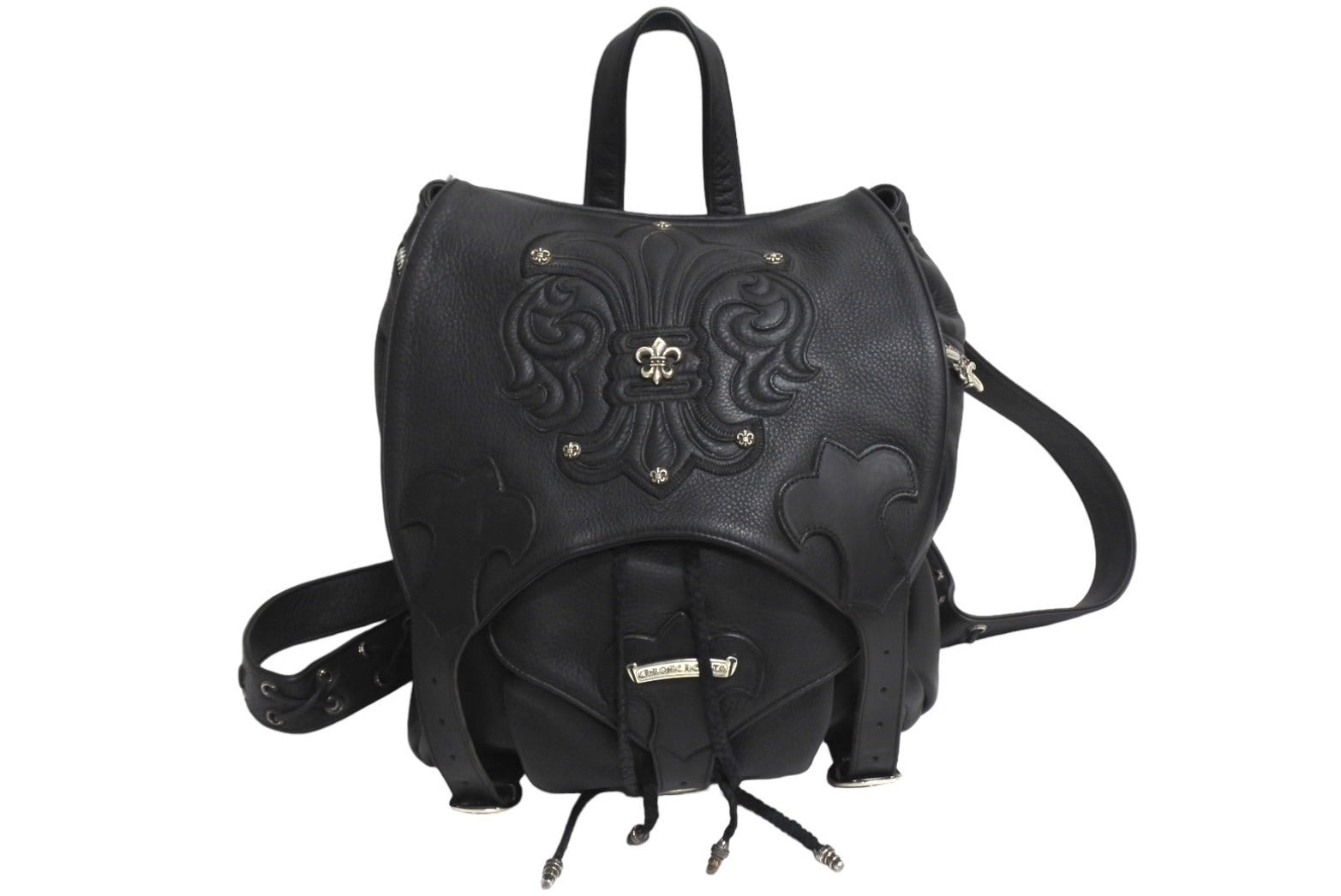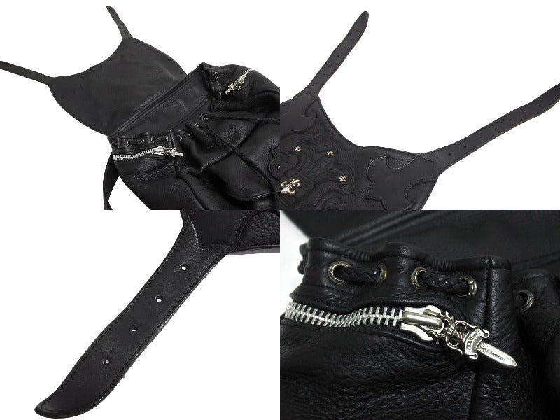 BSフレアモチーフのレザーパーツとシルバーのスクロールロゴ、編みこみレザーがアクセントになったかっこいいアイテムです。