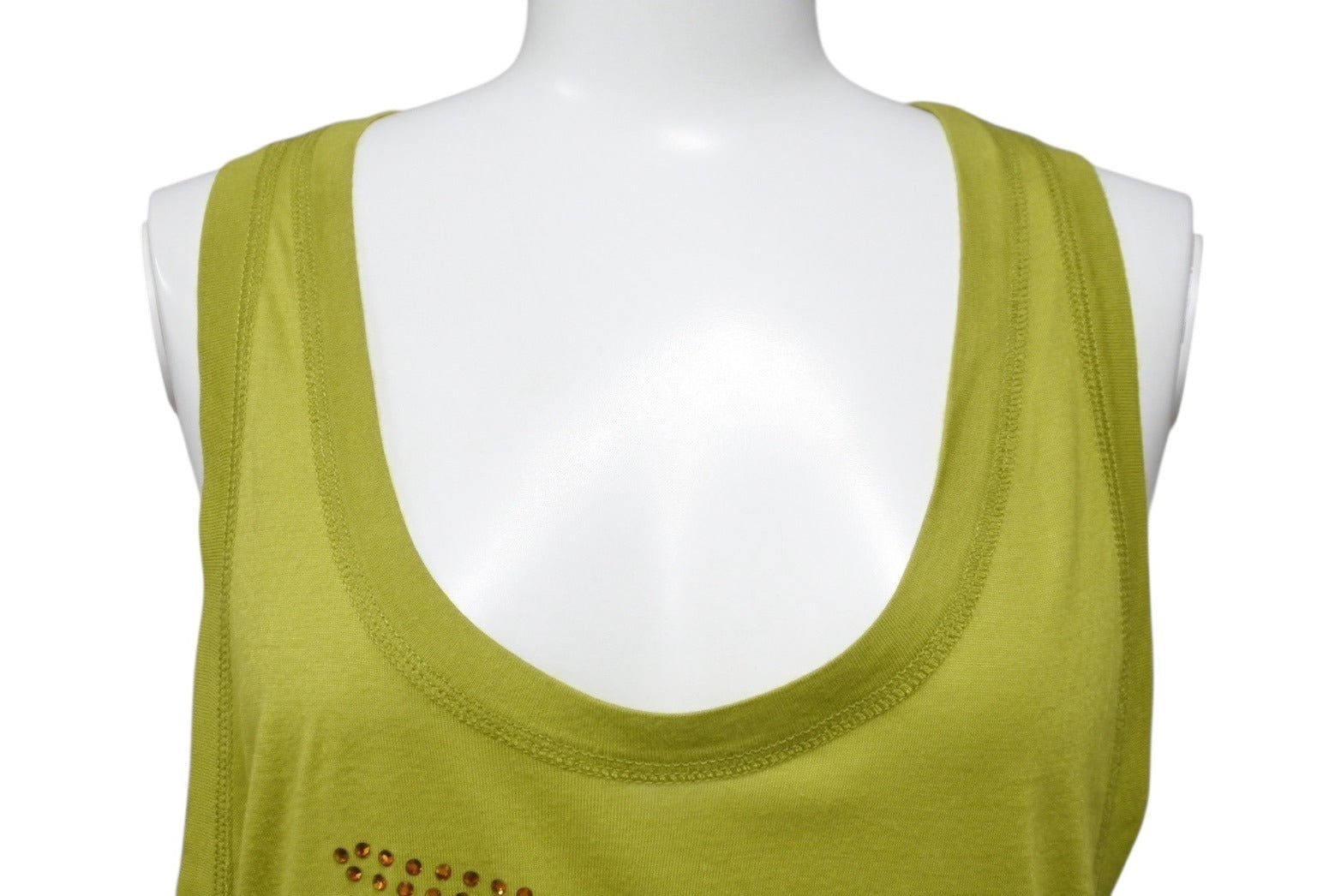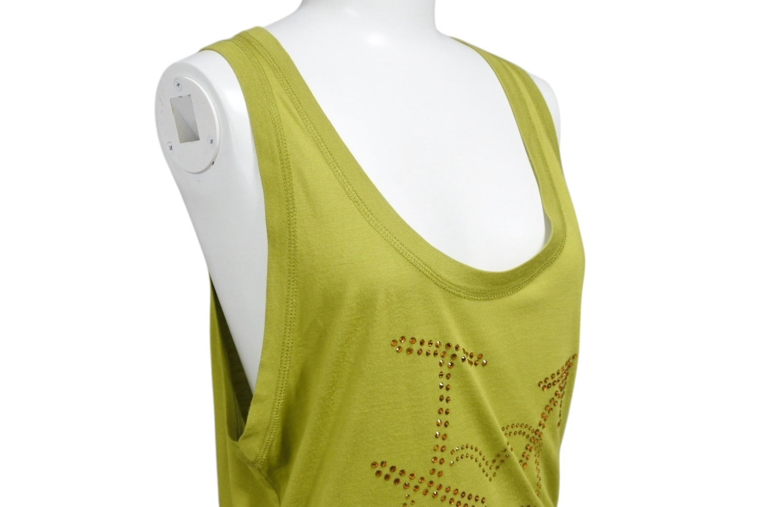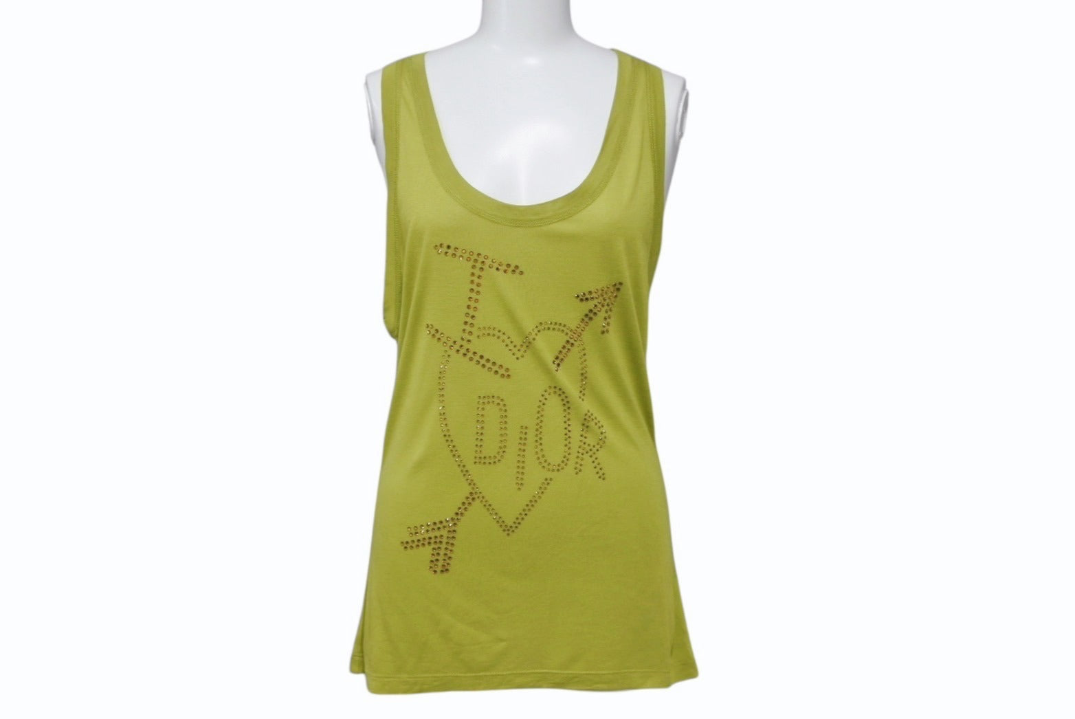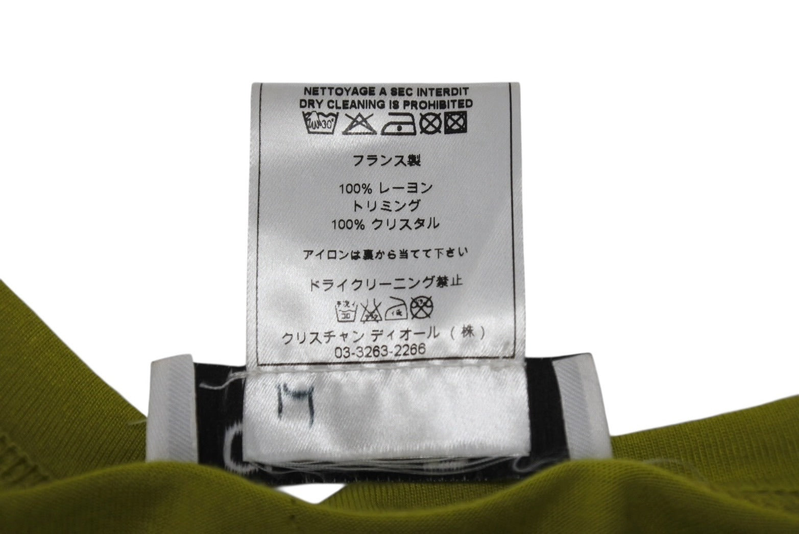 Christian Dior クリスチャンディオール ハート ロゴ ラインストーン ノースリーブ グリーン ガリアーノ レーヨン クリスタル 4H16155970 サイズ40 美品 中古 4b004063