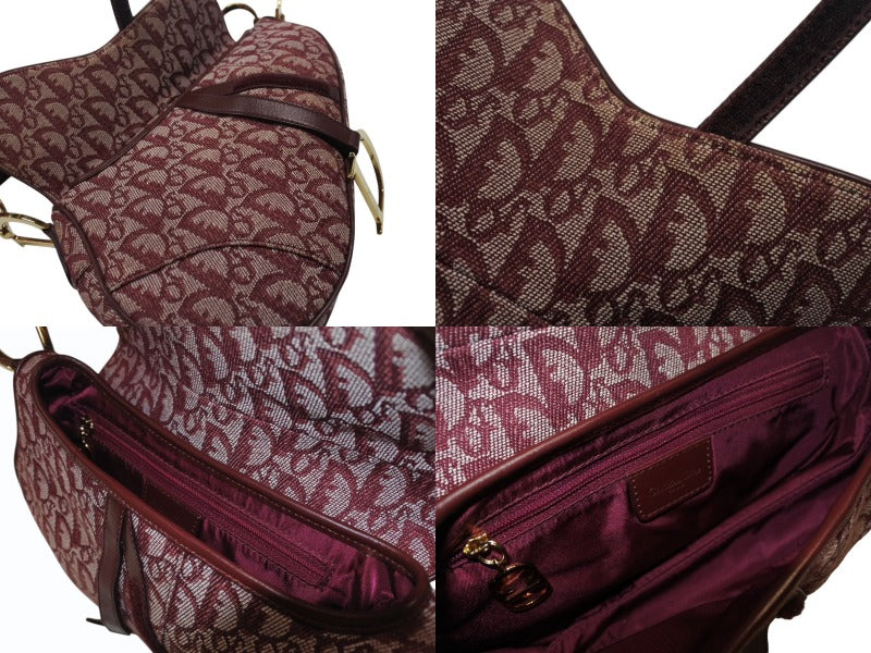 CHRISTIAN DIOR クリスチャンディオール サドルバッグ ガリアーノ期 ハンドバッグ トロッター柄 レザー レッド ゴールド金具 美品 中古 4b007209