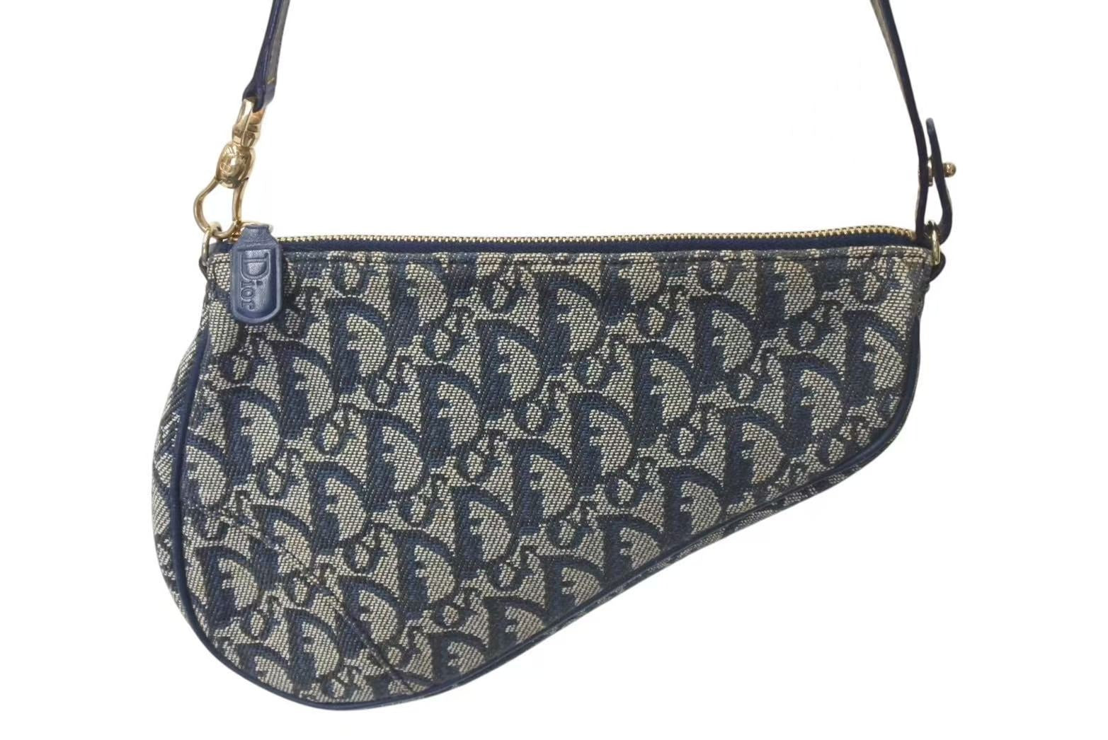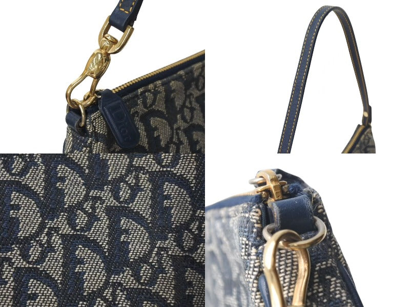 Christian Dior クリスチャンディオール トロッター サドルバッグ ワンショルダーバッグ サドルポーチ MC1012 ネイビー 美品 中古 4c073668