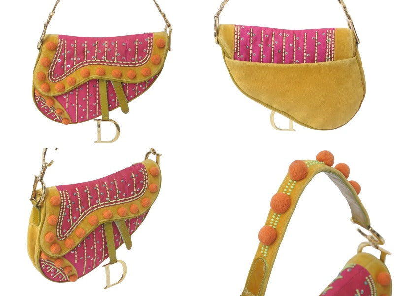 CHRISTIAN DIOR クリスチャンディオール ガリアーノ期 サドルバッグ ショルダーバッグ Limited Edition 0571 ベルベット ビーズ 美品 中古 4c075937