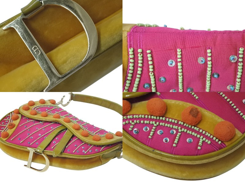 ショルダーバッグ CHRISTIAN DIOR クリスチャンディオール ガリアーノ期 サドルバッグ ショルダーバッグ Limited Edition 0571 ベルベット ビーズ