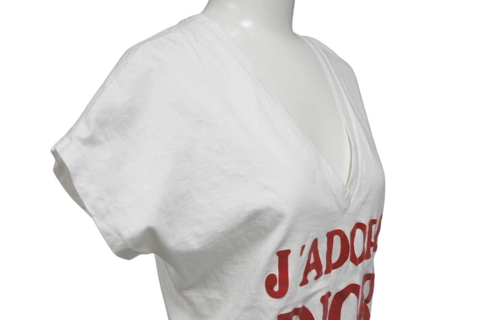 ChristianDior クリスチャンディオール J'ADORE VネックTシャツ 3H16155400 コットン ホワイト レッド サイズ40 美品 中古 4c076711