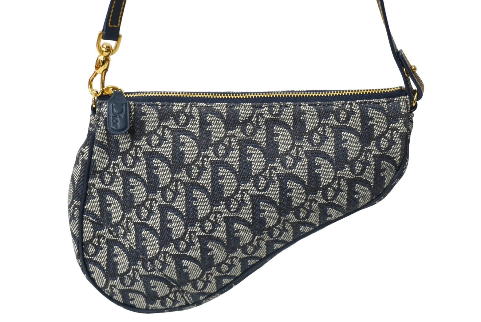 極美品 ChristianDior クリスチャンディオール サドルポーチ ワンショルダーバッグ トロッター MC 0072 ネイビー 中古 62270