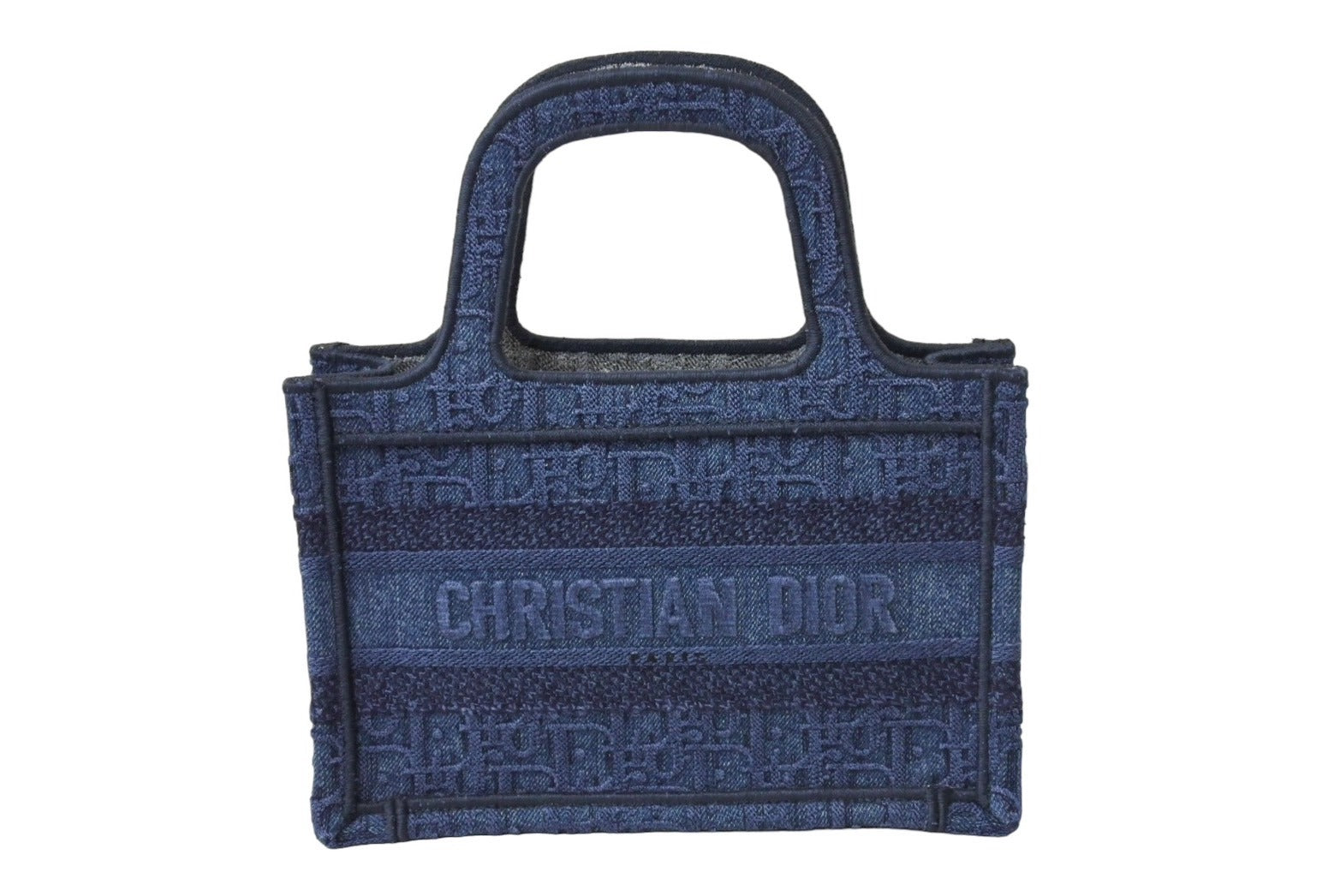 Christian Dior クリスチャンディオール ブック トート ミニ バッグ オブリーク デニム キャンバス ブルー 美品 中古 67319
