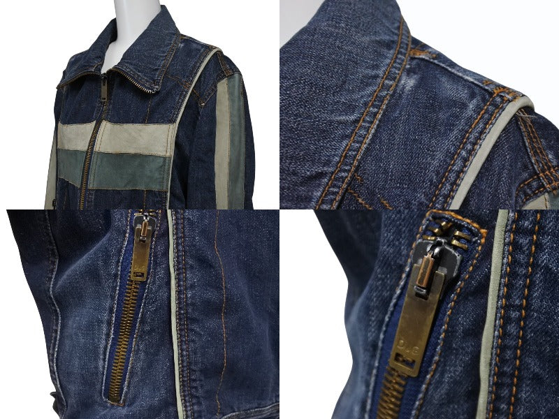 DOLCE&GABBANA ドルチェアンドガッバーナ 2004AW レーシング レザー デニム ジャケット ブルー アウター サイズ34/48 美品 中古 4b003169