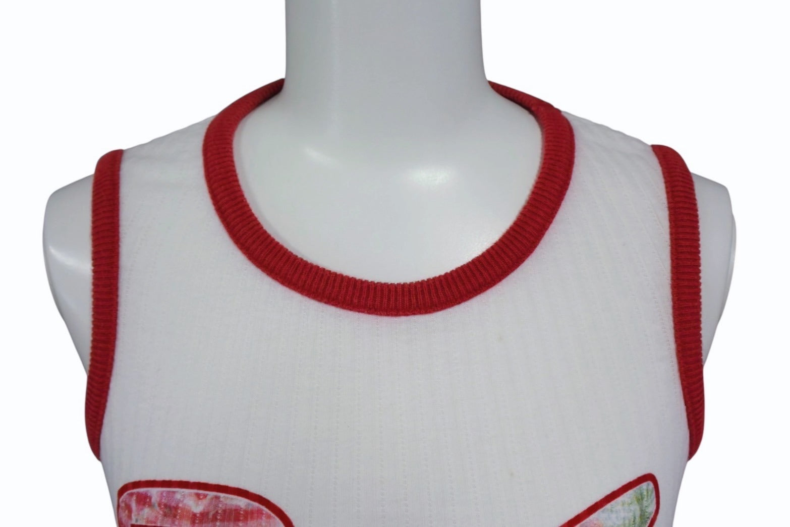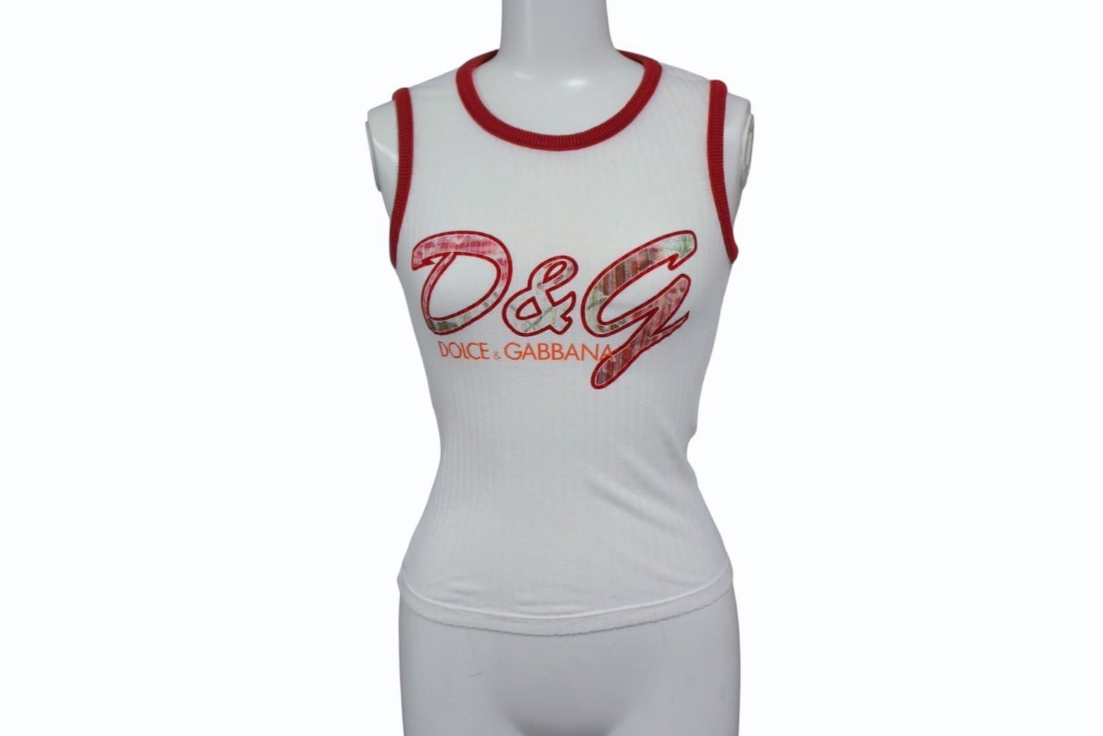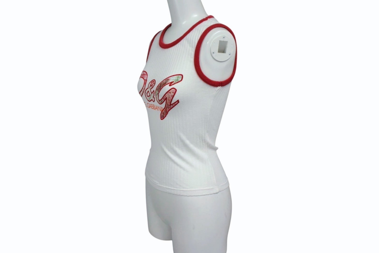 DOLCE&GABBANA ドルチェ&ガッバーナ タンクトップ ノースリーブ ブランドロゴ コットン ホワイト レッド サイズ26/40 美品 中古 4b003363
