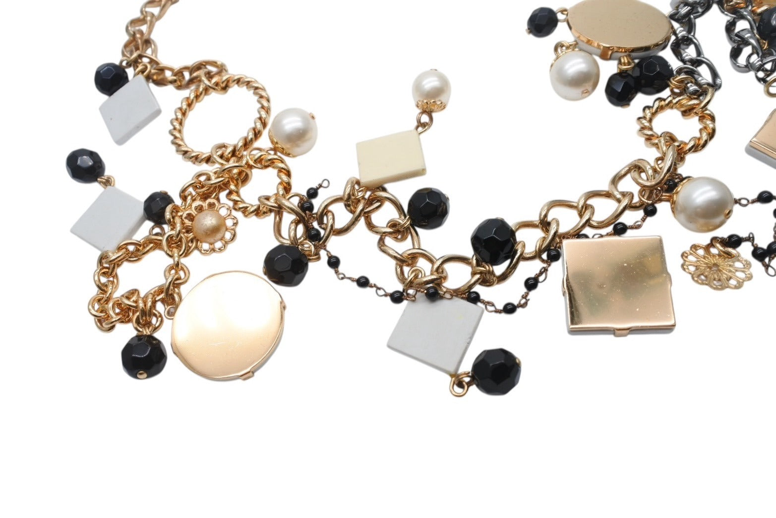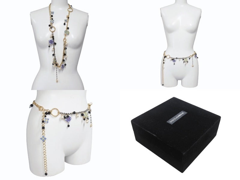 メキシカンタイル調のモチーフやフェイクパール 、カラーストーンが可愛らしいアクセントになったネックレスです。品と高級感溢れるアイテムです。