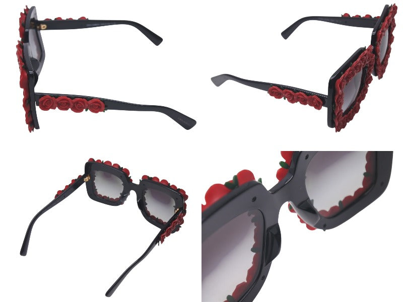 DOLCE & GABBANA ドルチェアンドガッバーナ サングラス ローズ 薔薇 DG4253 ブラック レッド プラスチック 50□27 140 良品 中古 4c076527