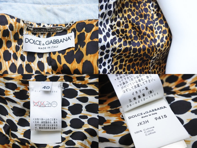 DolceandGabbana ドルチェ アンド ガッバーナ デニムジャケット レオパード 02SS JK3H 9415 ブルー サイズ 40 良品 中古 50161
