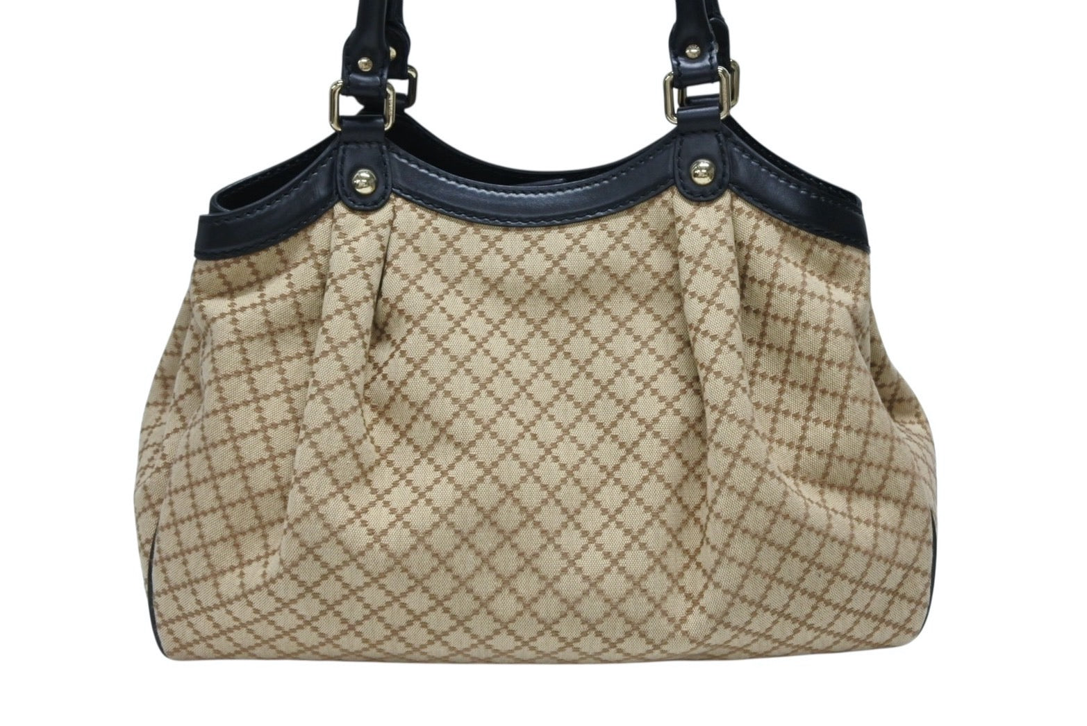 極美品 GUCCI グッチ ハンドバッグ トートバッグ ディアマンテ スーキー ベージュ キャンバス 211944 シルバー金具 中古 4b007883