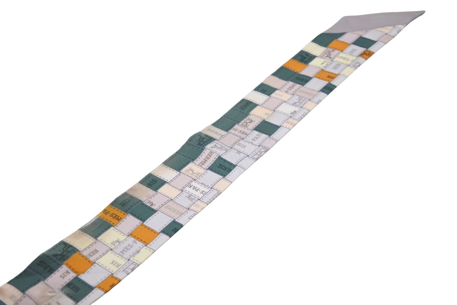 HERMES エルメス ストール ツイリー スカーフ グリーン ホワイト シルク フランス製 良品 中古 49385