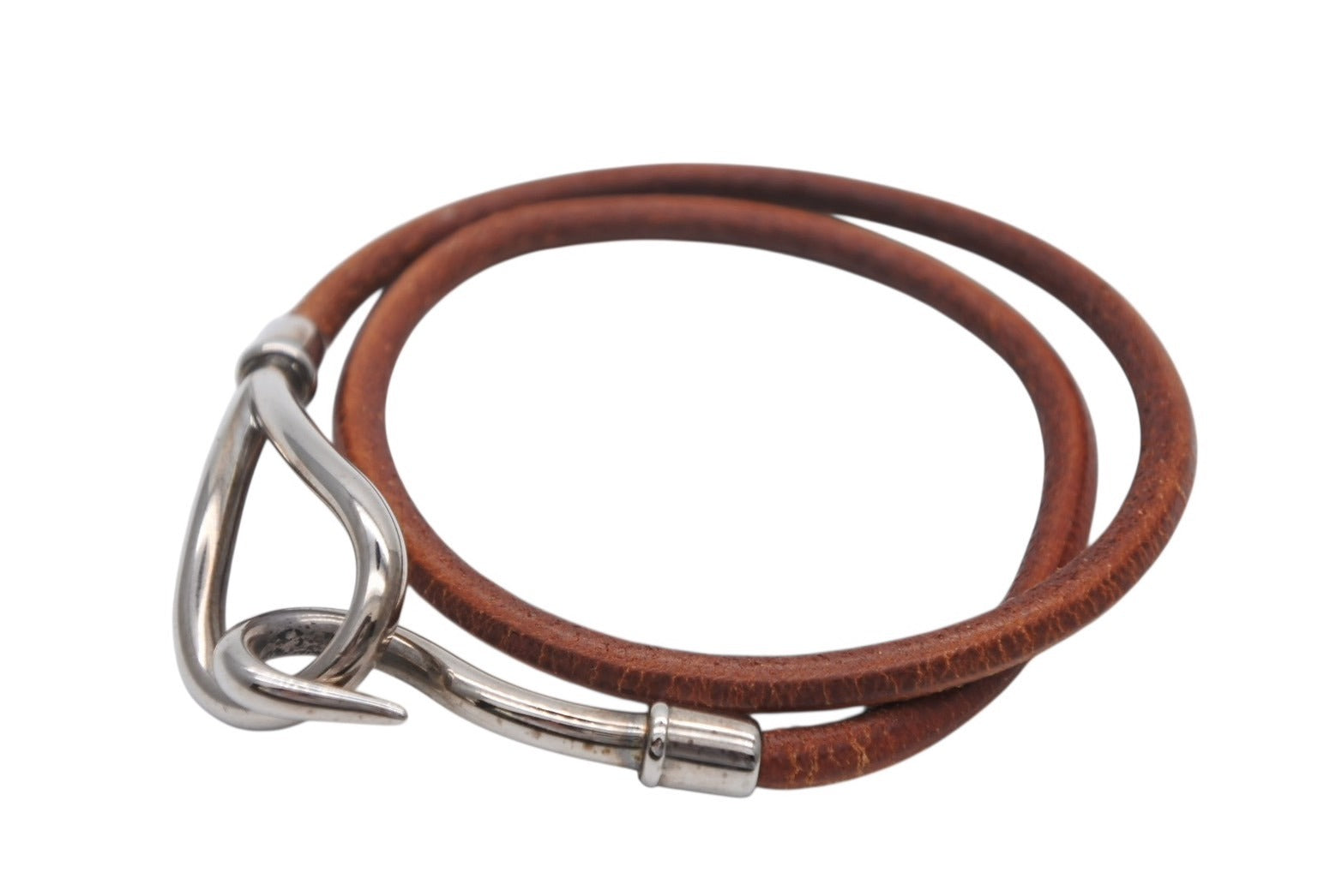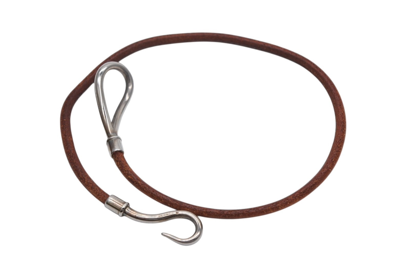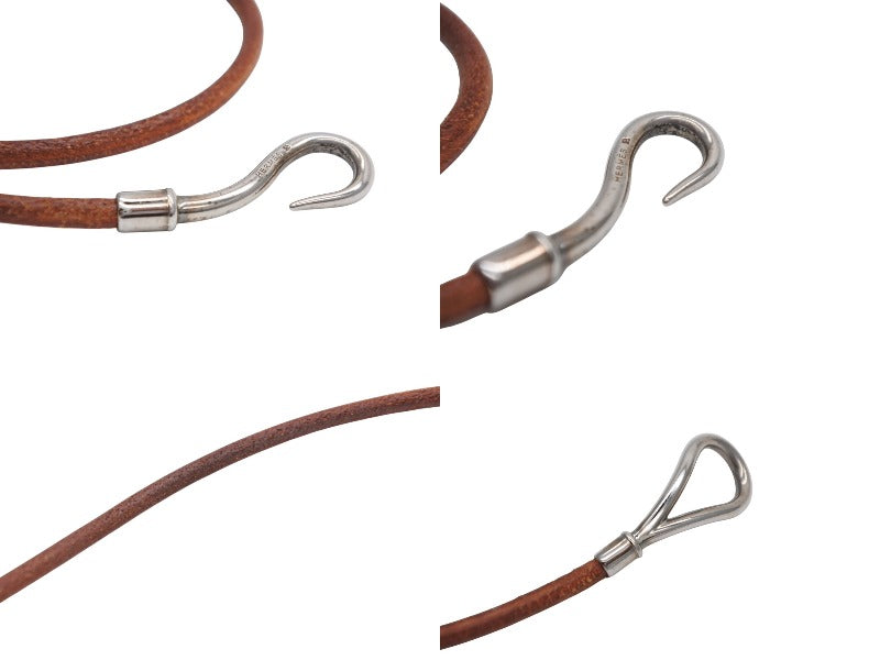 HERMES エルメス Jumbo H ジャンボチョーカー ネックレス 2連ブレスレット アクセサリー レザー ブラウン シルバー金具 美品 中古 4b007853