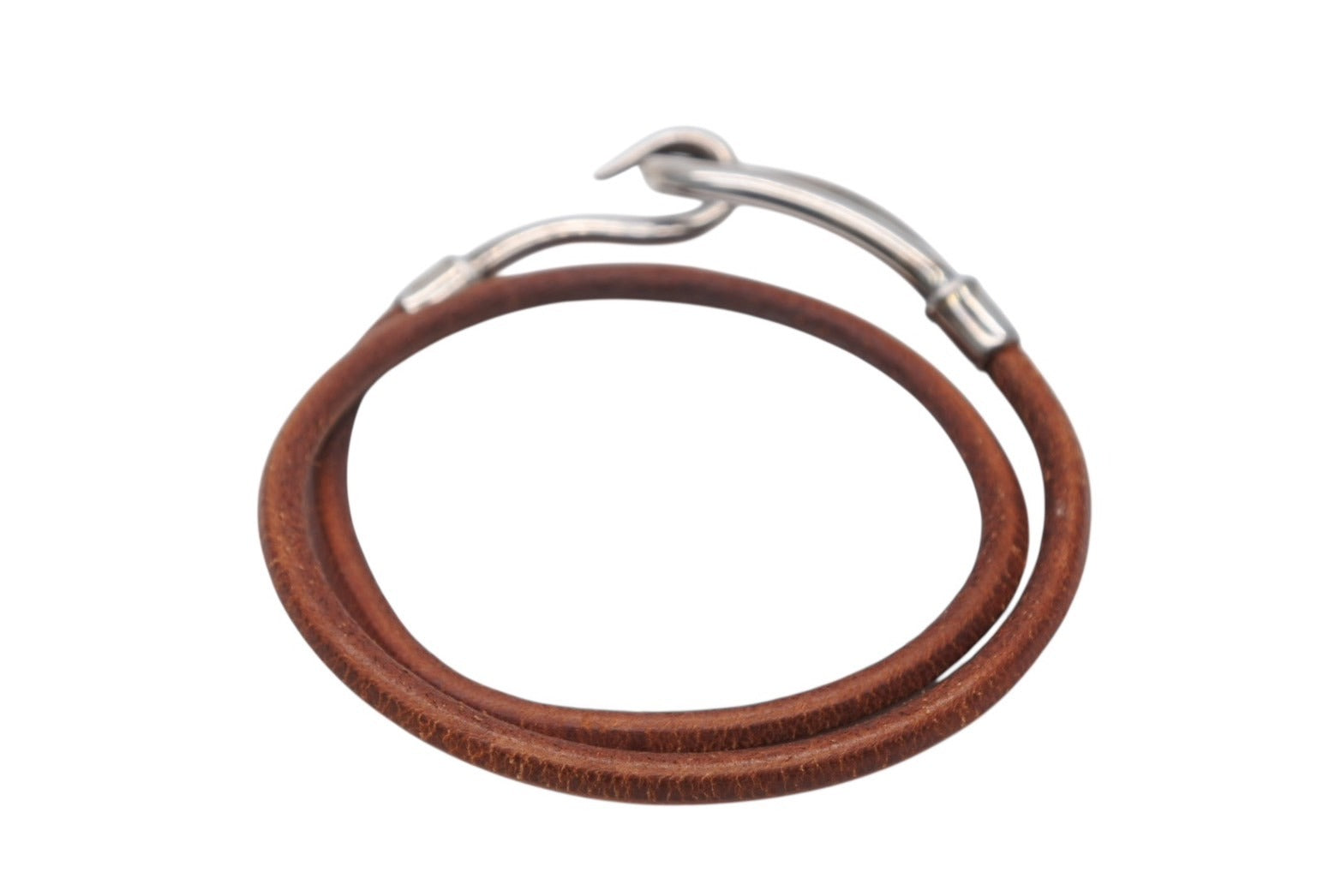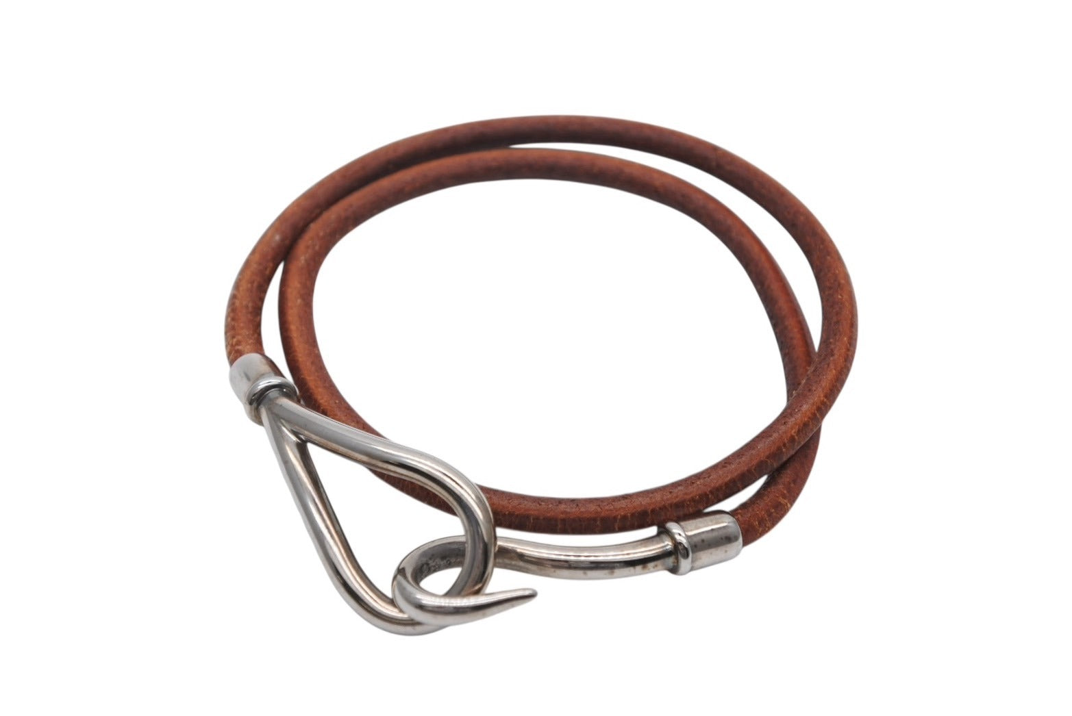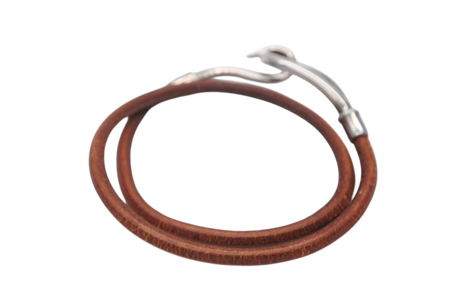 HERMES エルメス Jumbo H ジャンボチョーカー ネックレス 2連ブレスレット アクセサリー レザー ブラウン シルバー金具 美品 中古 4b007853