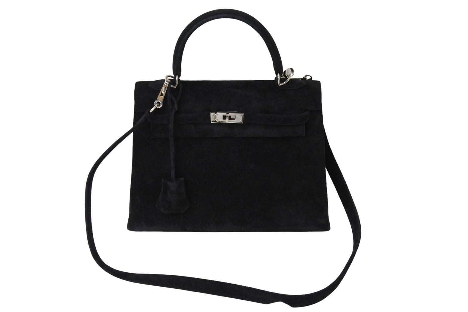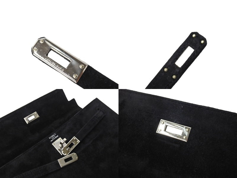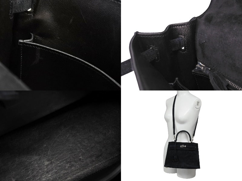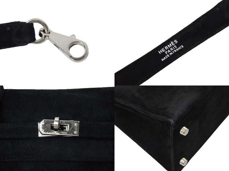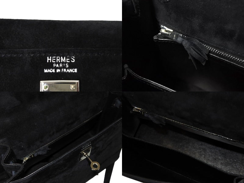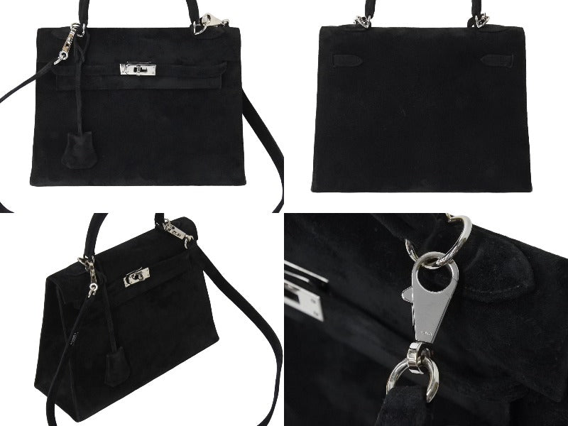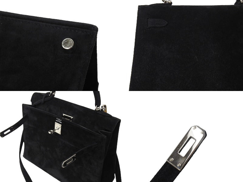 極美品 HERMES エルメス ケリー25 バッグ □H刻 ブラック ドブリス スエード シルバー金具 中古 4c067143