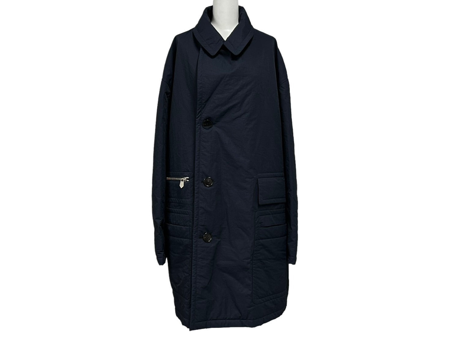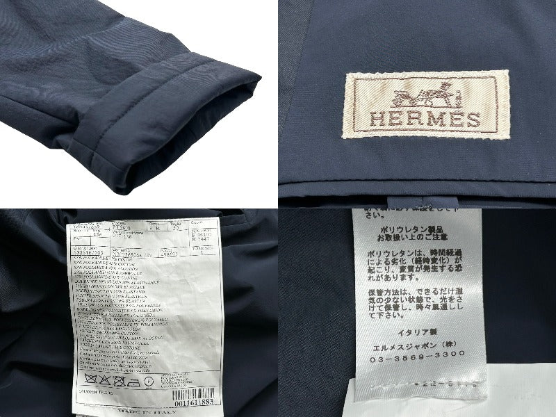 新品未使用 HERMES エルメス コート ジャケット PT9608 中綿 ネイビー ナイロン コットン シルバー金具 サイズ50 中古 55155