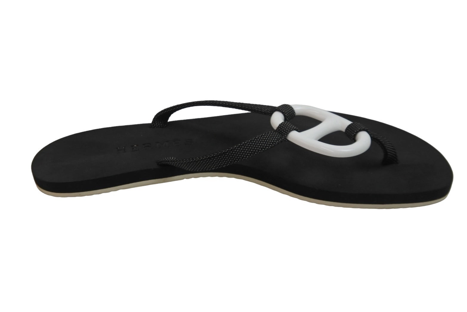 HERMES エルメス サンダル ビーチサンダル カラネラ シェーヌダンクル ラバー レディース ブラック 美品 中古 56220