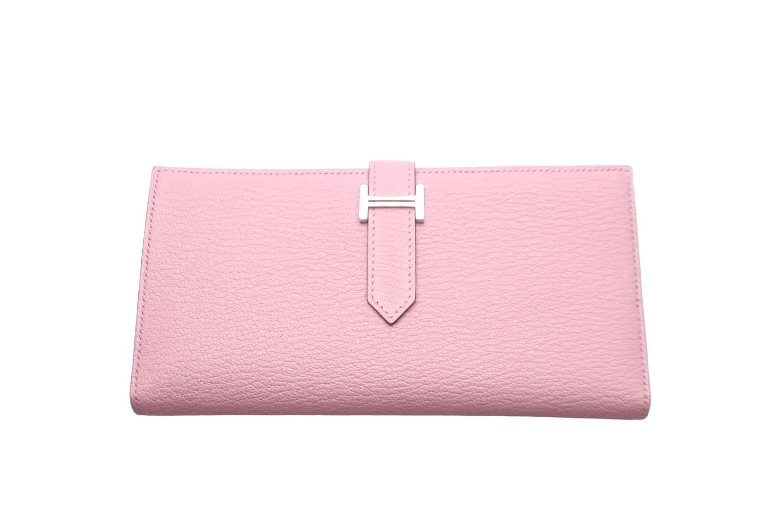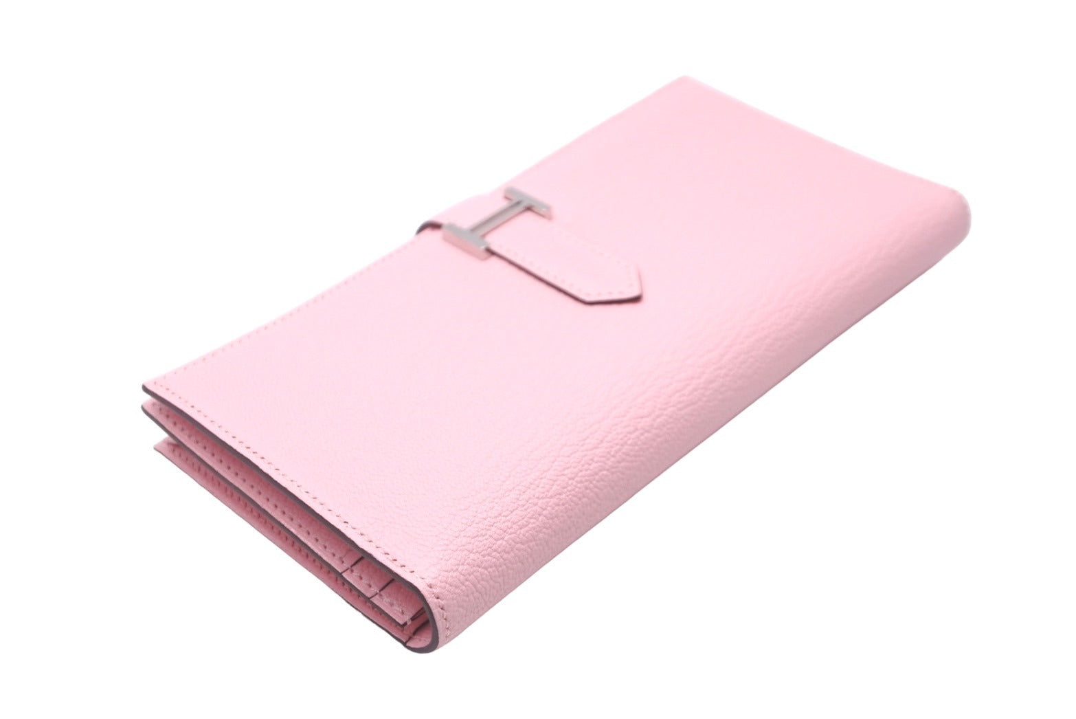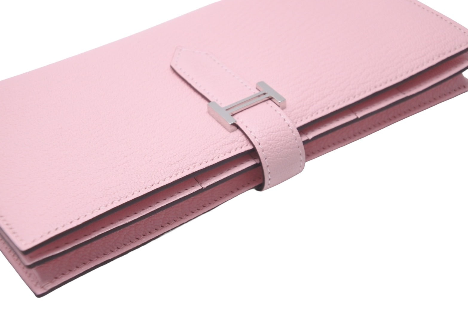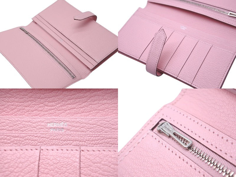 新品未使用 HERMES エルメス べアンスフレ 長財布 ウォレット シェーブル Z刻印 ローズサクラ シルバー金具 中古 58603