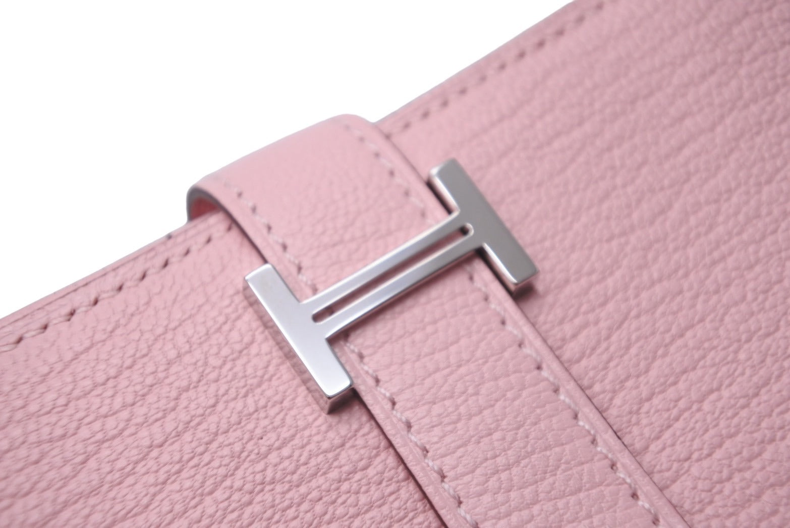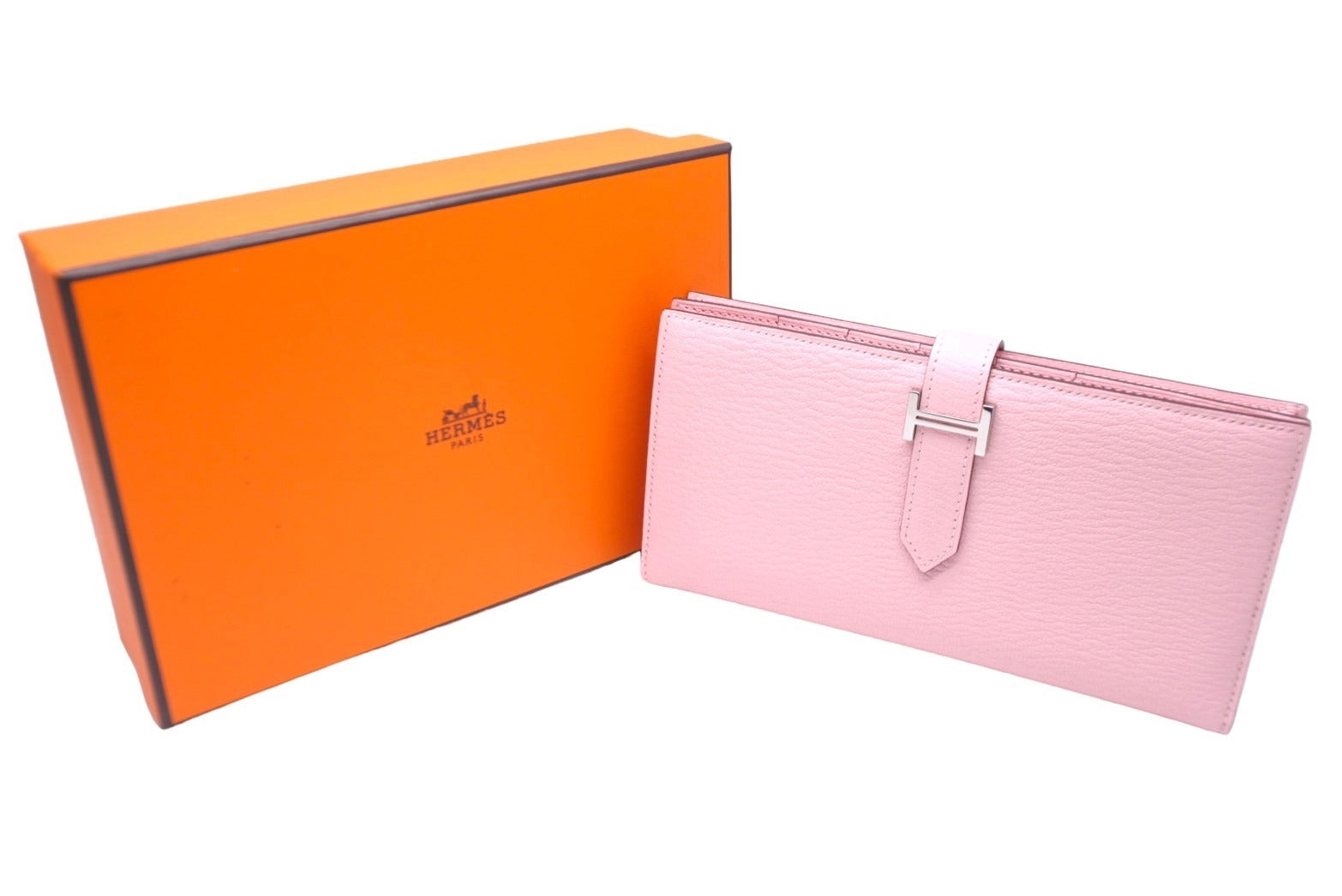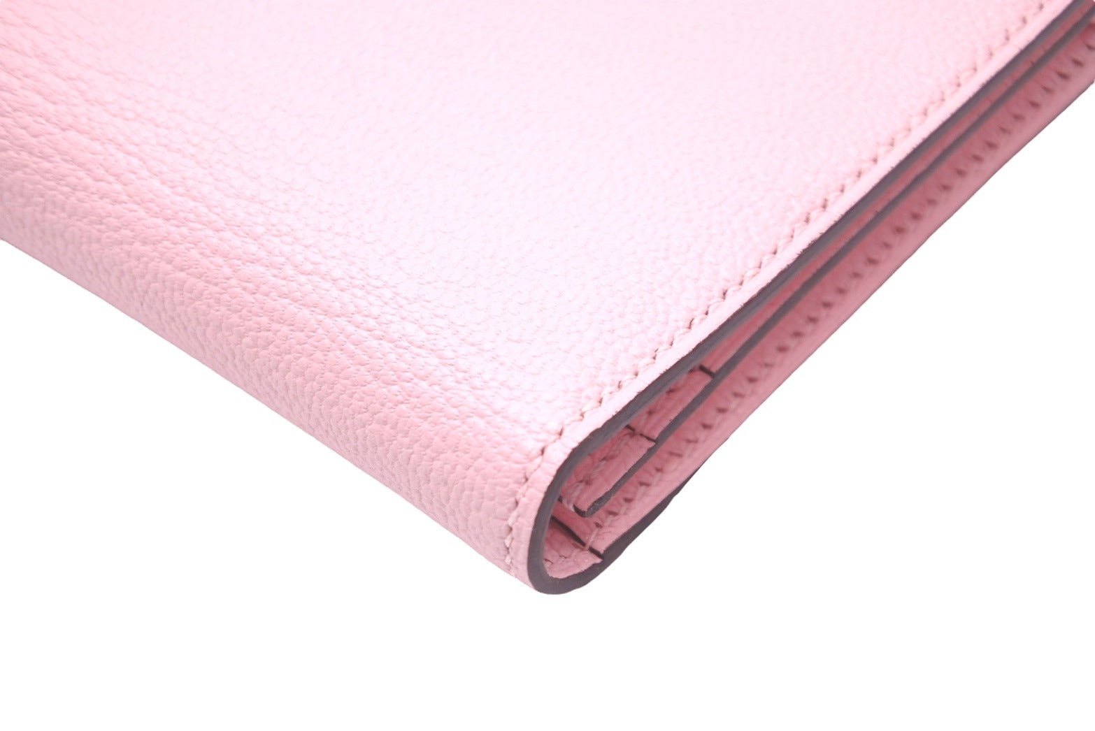新品未使用 HERMES エルメス べアンスフレ 長財布 ウォレット シェーブル Z刻印 ローズサクラ シルバー金具 中古 58603
