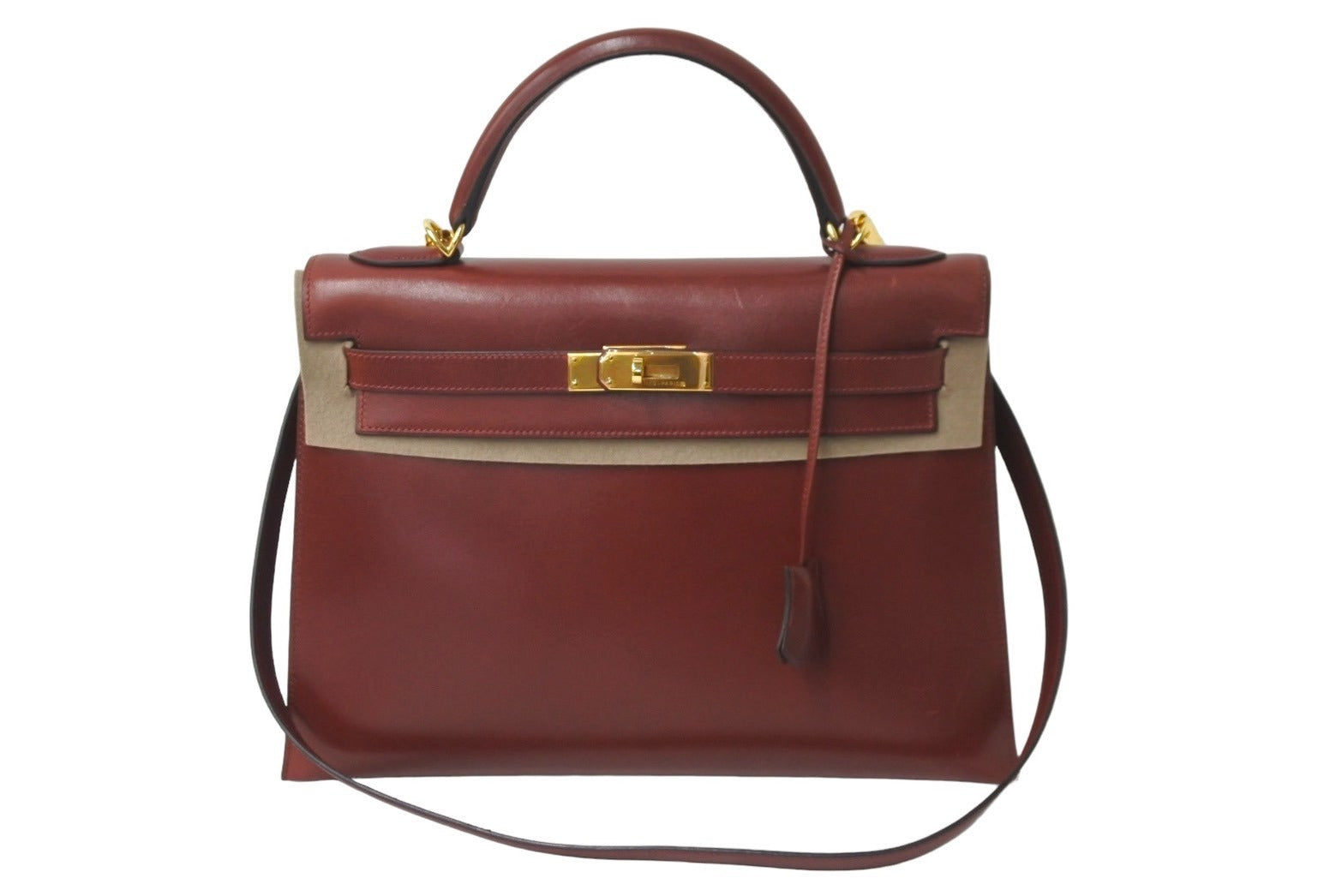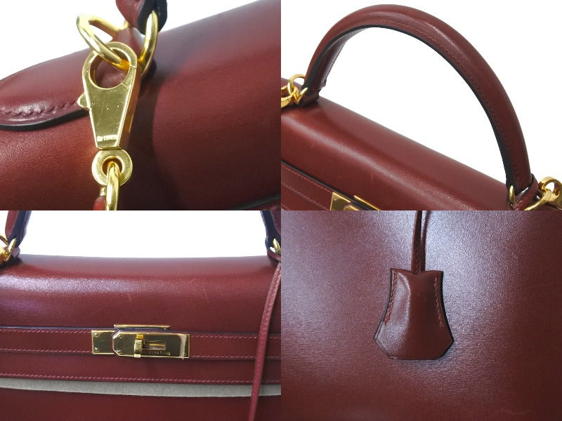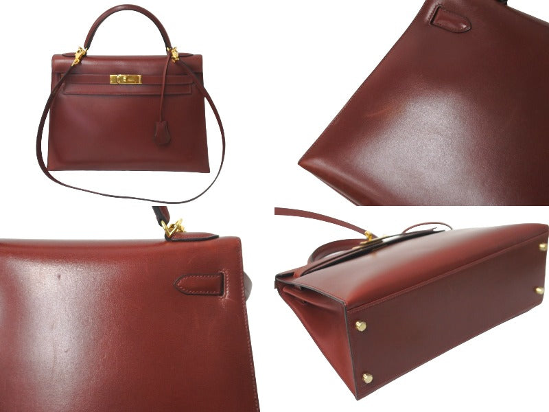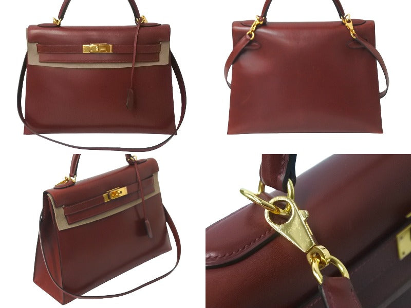 エルメス ケリー32 内縫い ルージュアッシュ □E刻印 カーフスキン 外縫い 新金具 ゴールド金具 ハンドバッグ 2WAY 美品 中古 59613