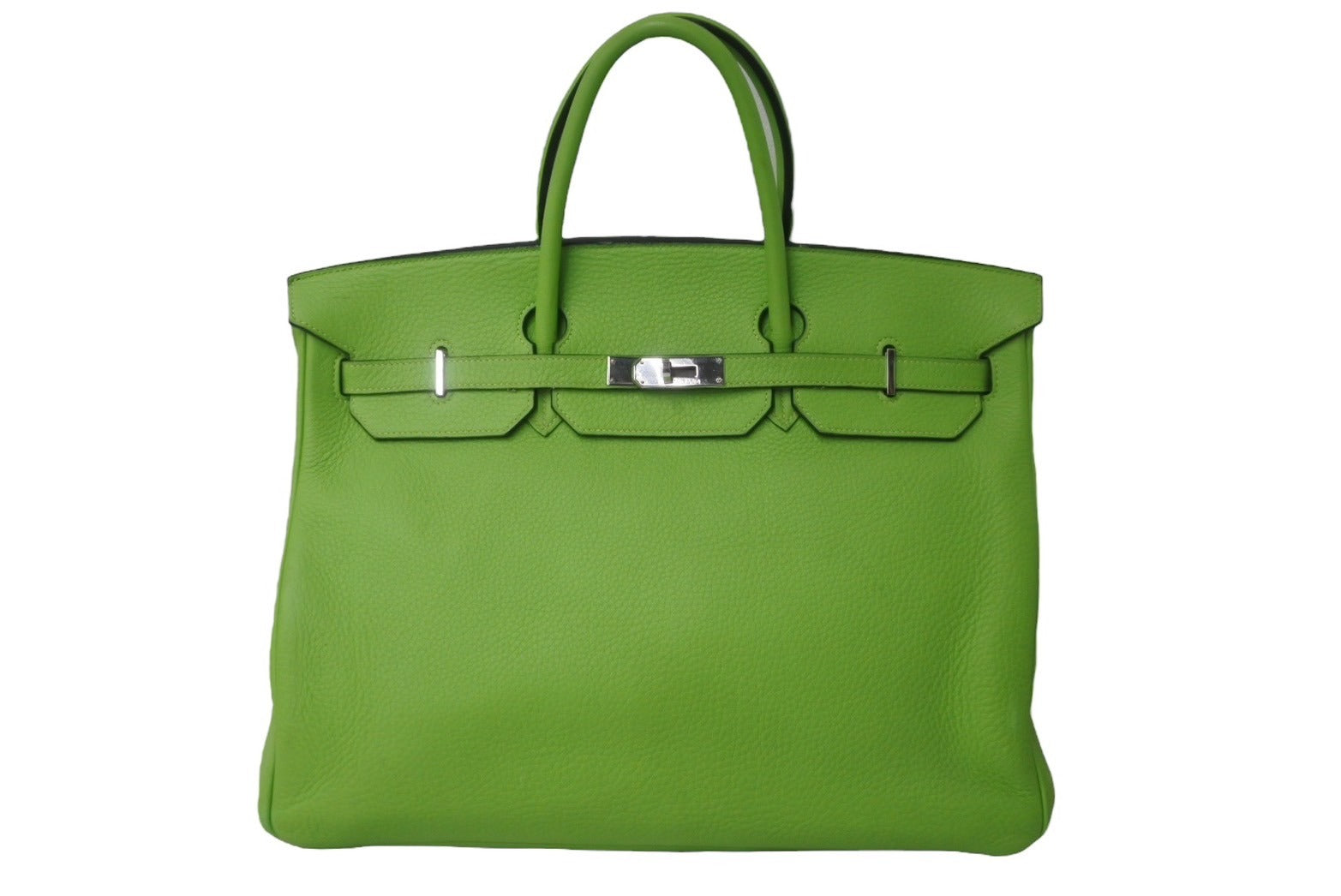 極美品 激レア HERMES エルメス バーキン40 アップルグリーン トリヨンクレマンス 40cm □G シルバー金具 ハンドバッグ 中古 62751