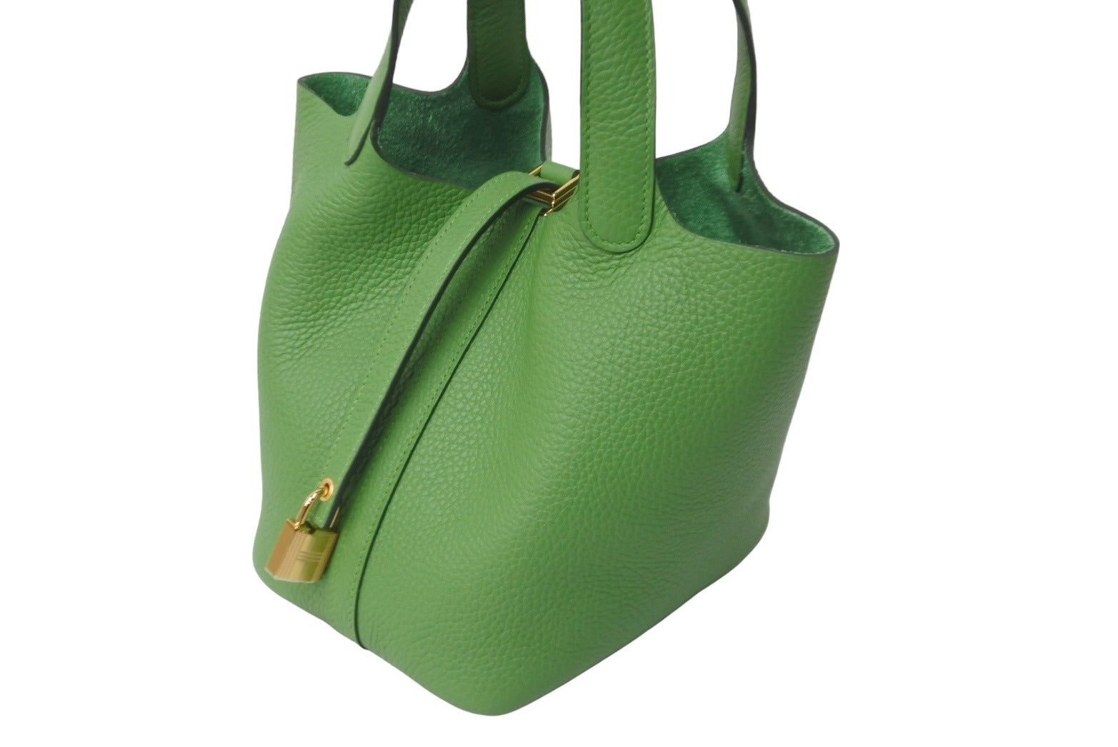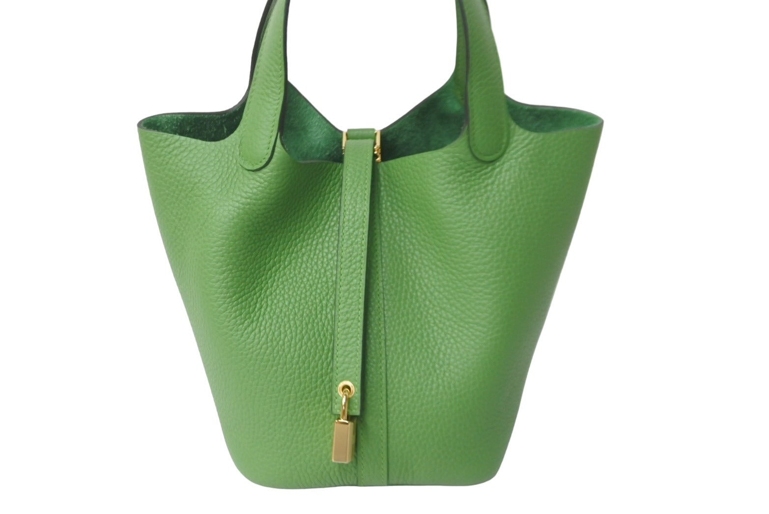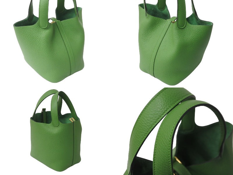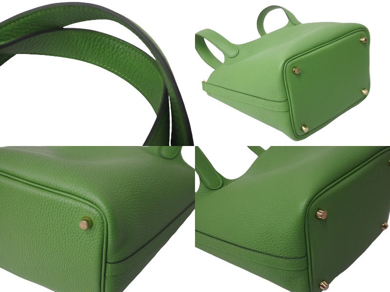 未使用 HERMES エルメス ハンドバッグ ピコタンロックPM トリヨンクレマンス ヴェールユッカ B刻印 ゴールド金具 中古 63614