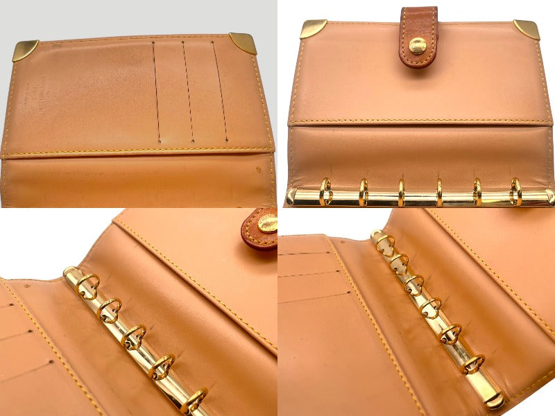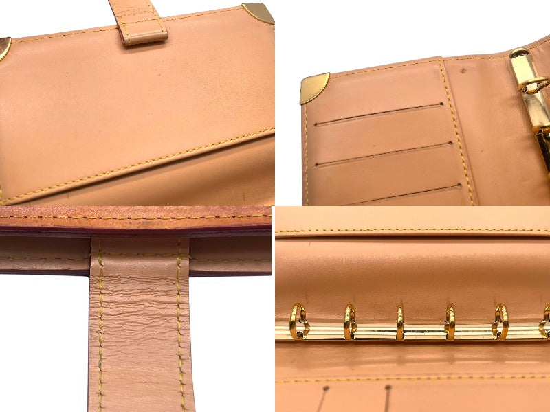 両面端僅かに汚れあり。内側汚れ、使用感あり。金具傷あり。ヌメ革全体的にヤケあり。