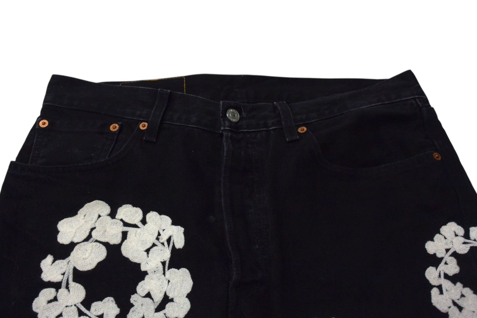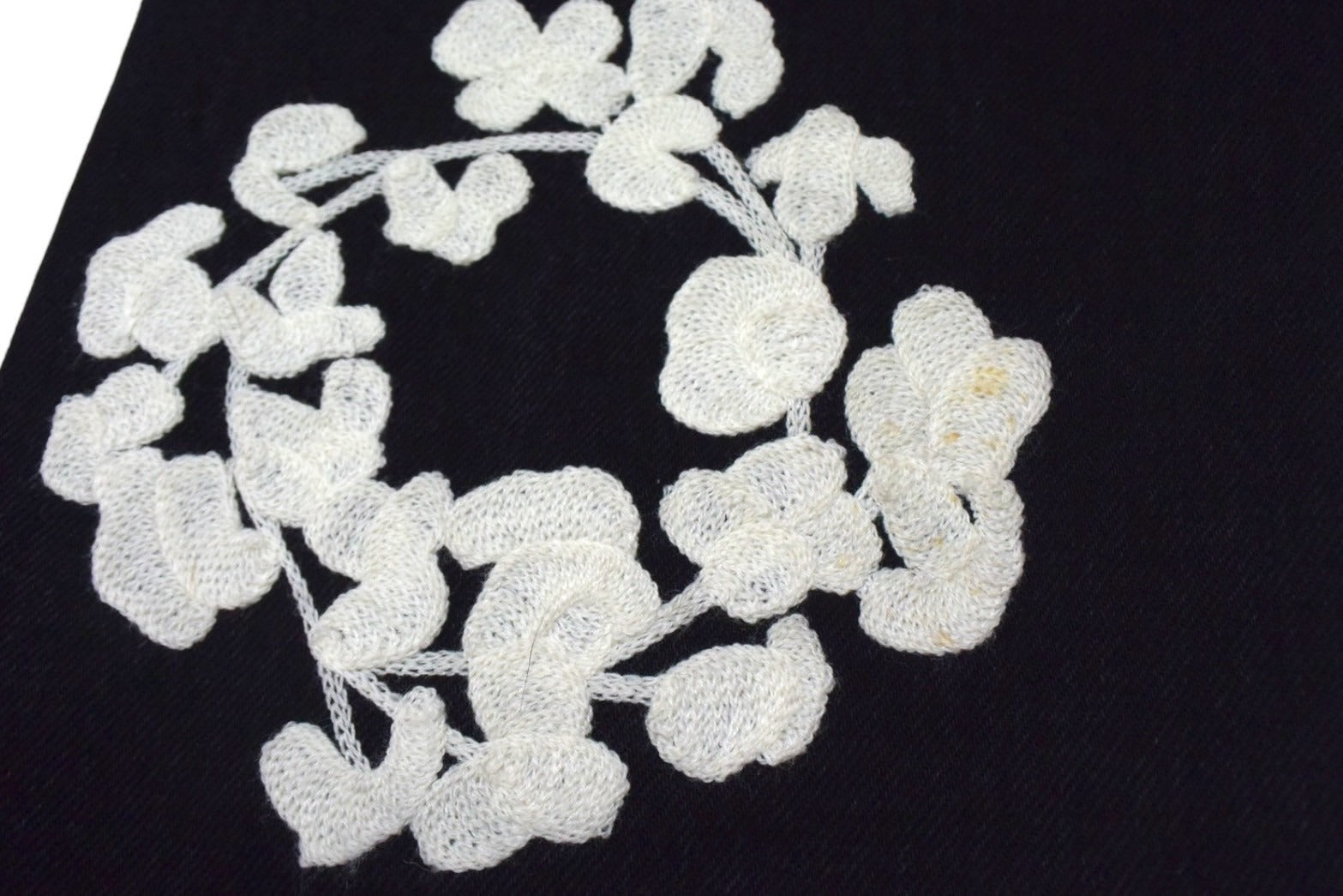 デニムティアーズの代表デザインであるコットンリースをチェーンステッチで表現したアイテムです。