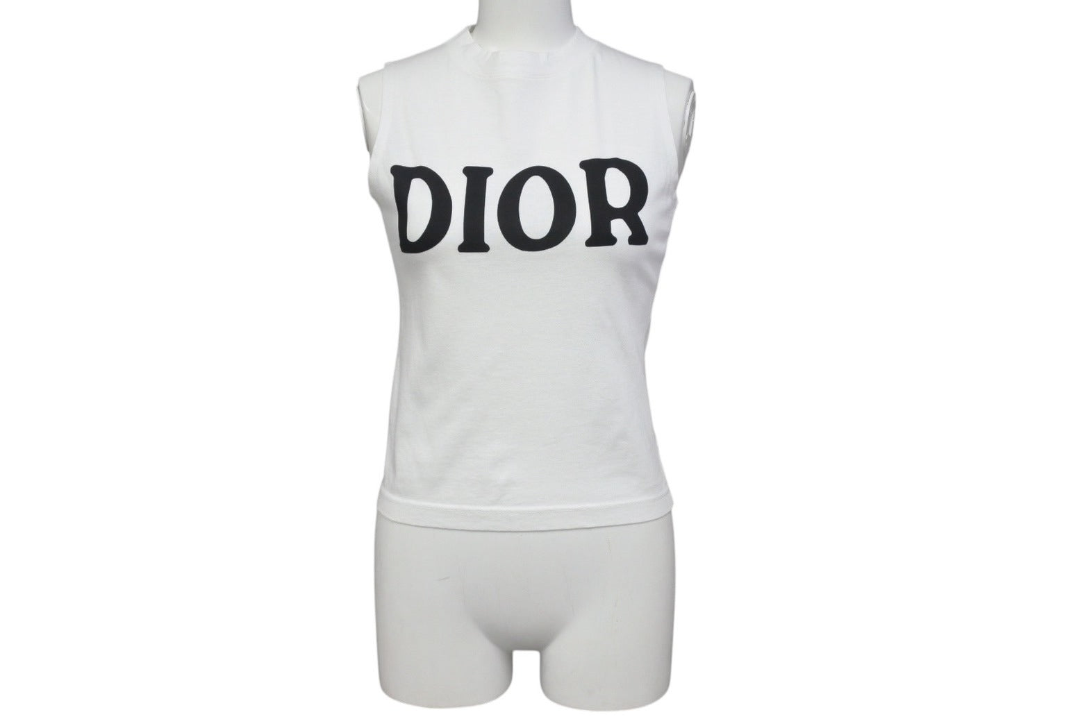 極美品 ChristianDior クリスチャンディオール タンクトップ 1P18151020 サイズM ナンバリングプリント ホワイト 中古 4b000830