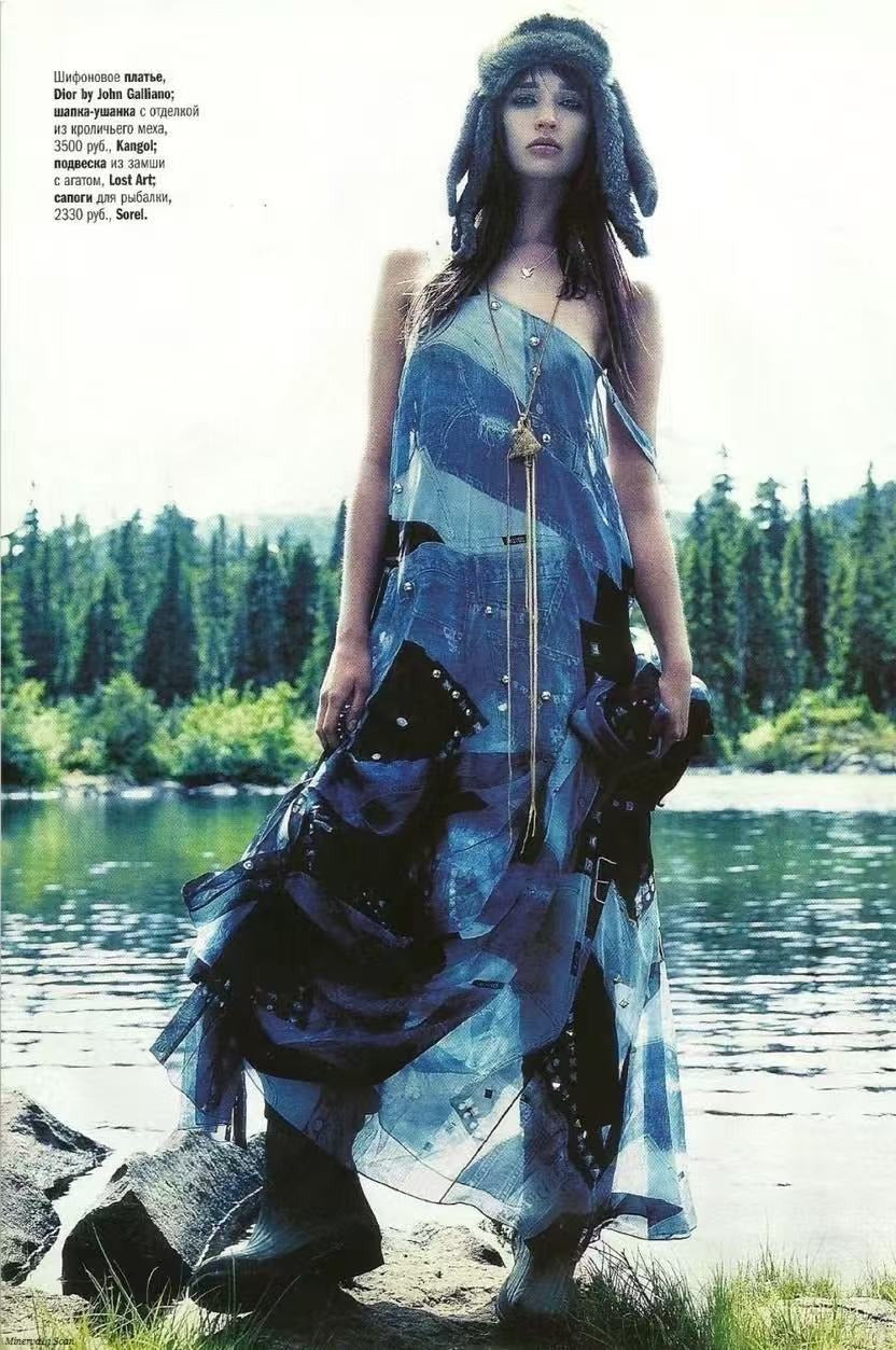 モデル Galliano Era Trompe L'oeil Denim Snow Boots